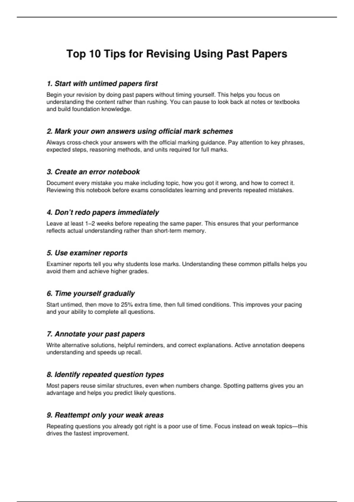 Past papers are the strongest revision tool available. The goal is not simply to finish papers, but to