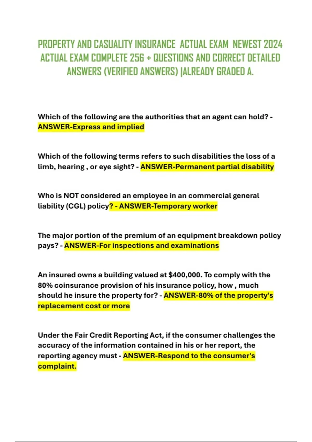 PROPERTY AND CASUALITY INSURANCE ACTUAL EXAM NEWEST 2024