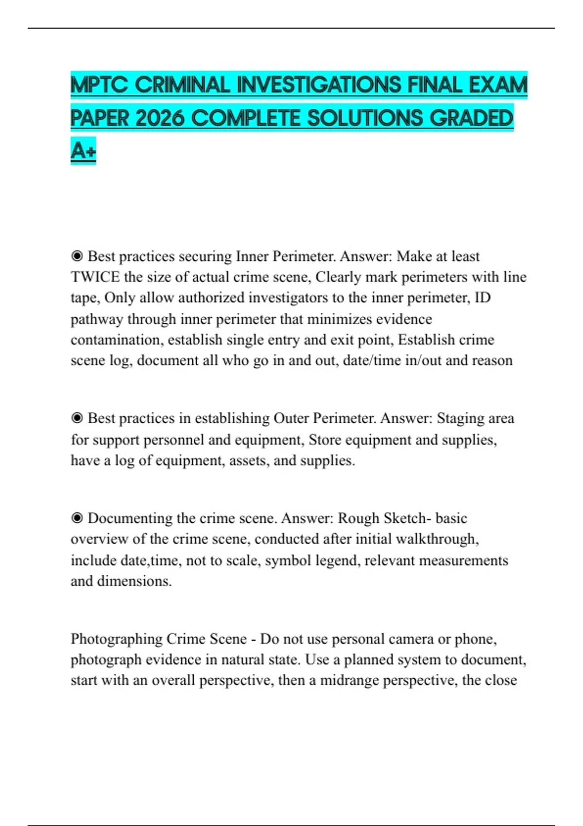 MPTC CRIMINAL INVESTIGATIONS FINAL EXAM PAPER 2026 COMPLETE SOLUTIONS GRADED A+