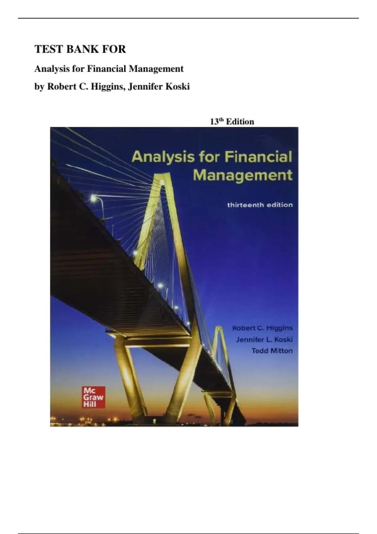 TEST BANK FOR Analysis for Financial Management (The Mcgraw-hill in Finance, Insurance, and Real Estate) 13th Edition.By Robert C. Higgins ( All Chapters ) Latest 2026