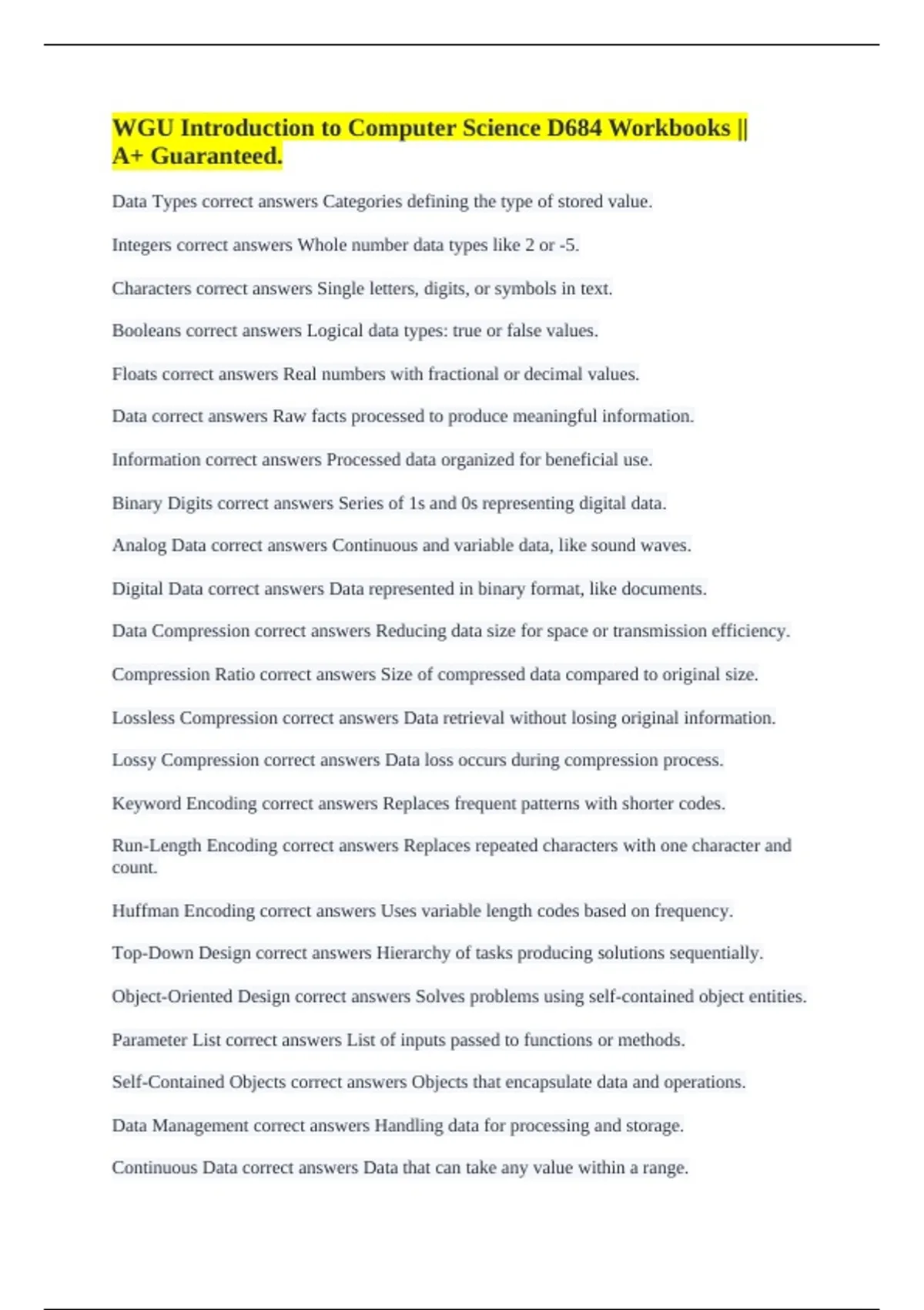 WGU Introduction to Computer Science D684 Workbooks || A+ Guaranteed.