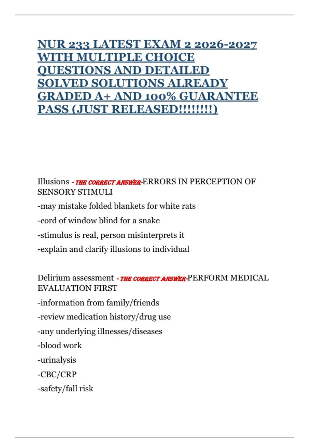 NUR 233 LATEST EXAM 2 2026-2027