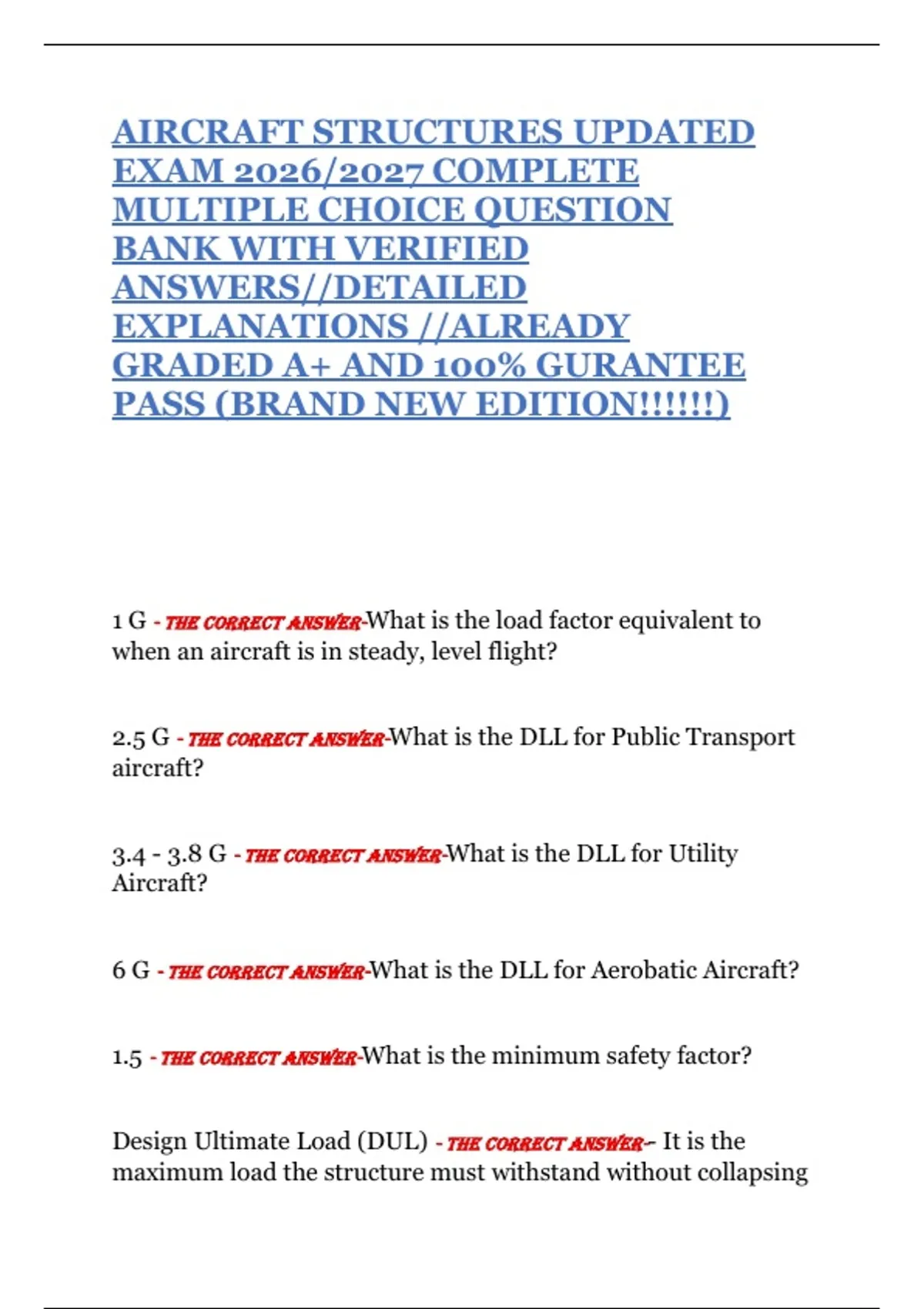 Proof Load - THE CORRECT ANSWER-- Load in which the aircraft