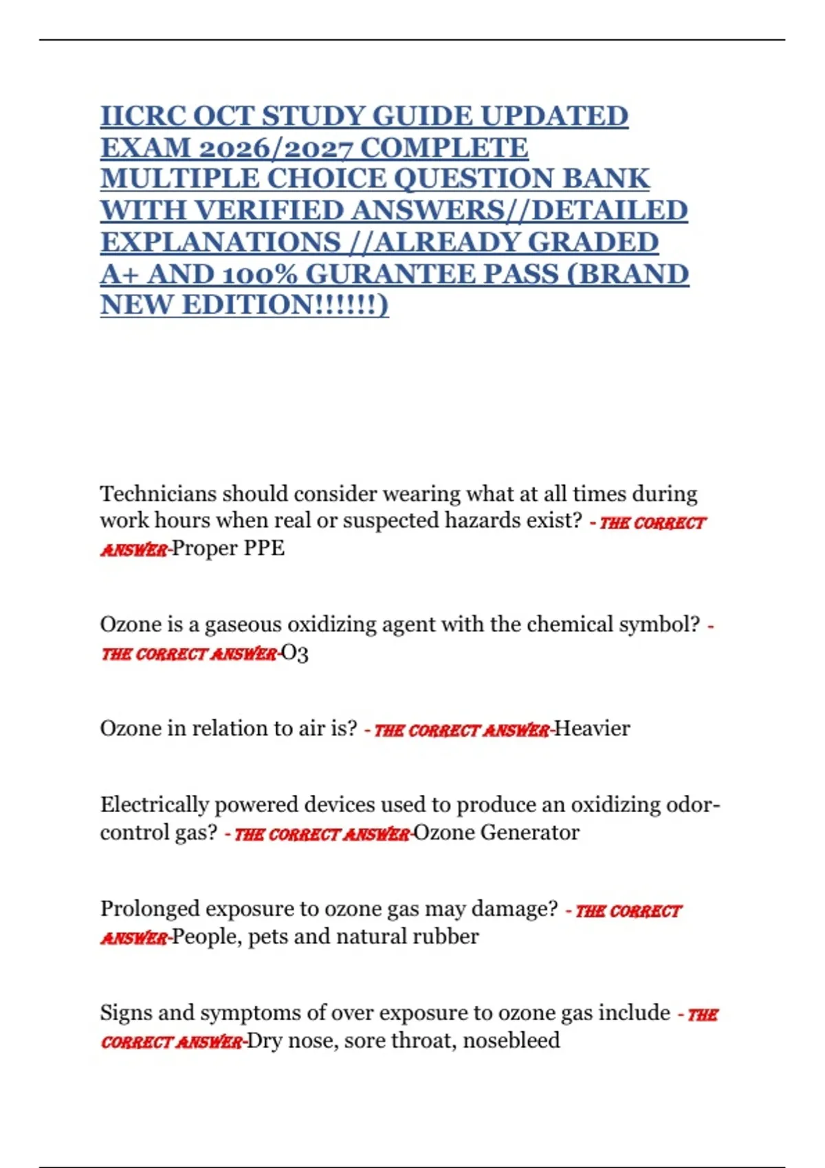 Comprehensive Review: IICRC OCT Exam 2026/27 with Fully Solved Questions and Detailed Explanations
