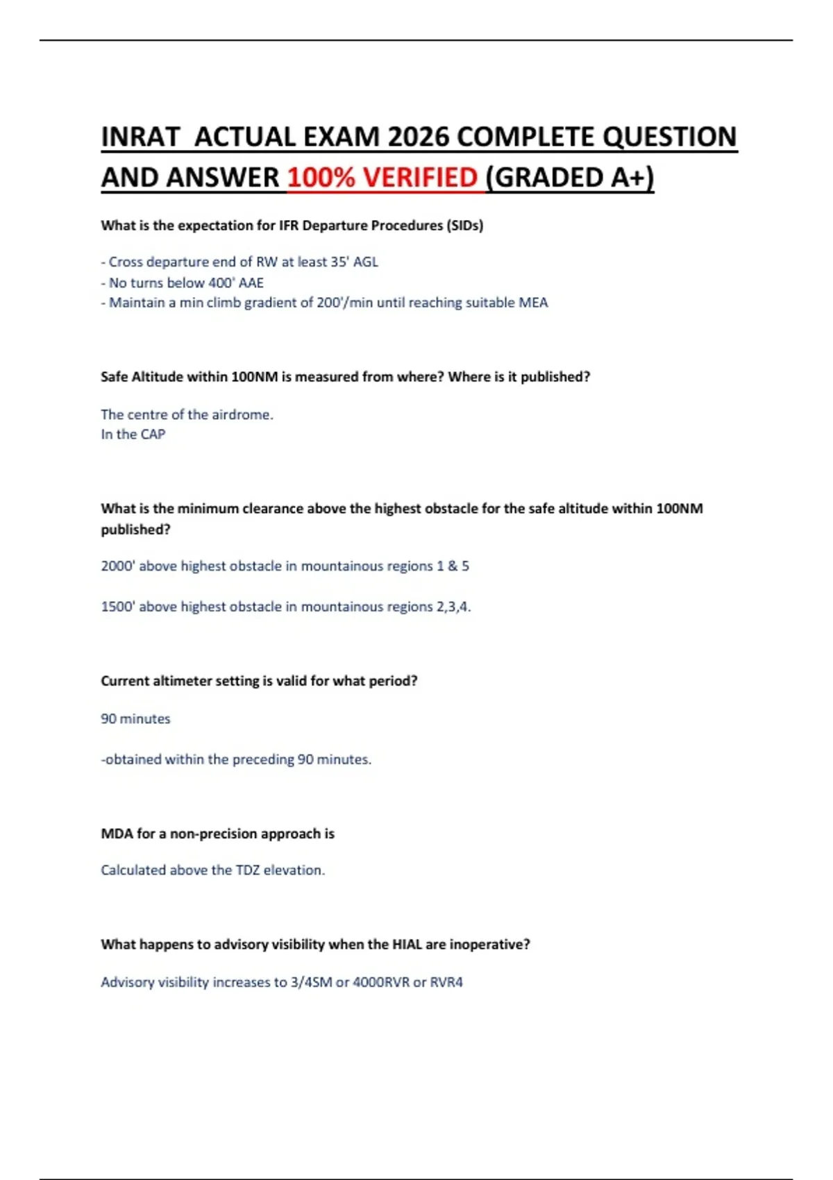 INRAT ACTUAL EXAM 2026 COMPLETE QUESTION AND ANSWER 100% VERIFIED (GRADED A+)
