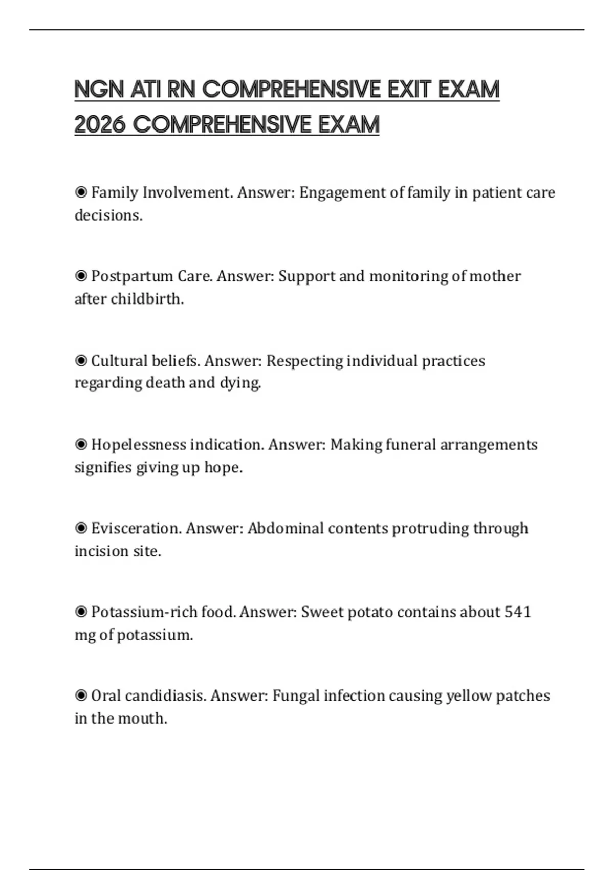 NGN ATI RN COMPREHENSIVE EXIT EXAM 2026 COMPREHENSIVE EXAM