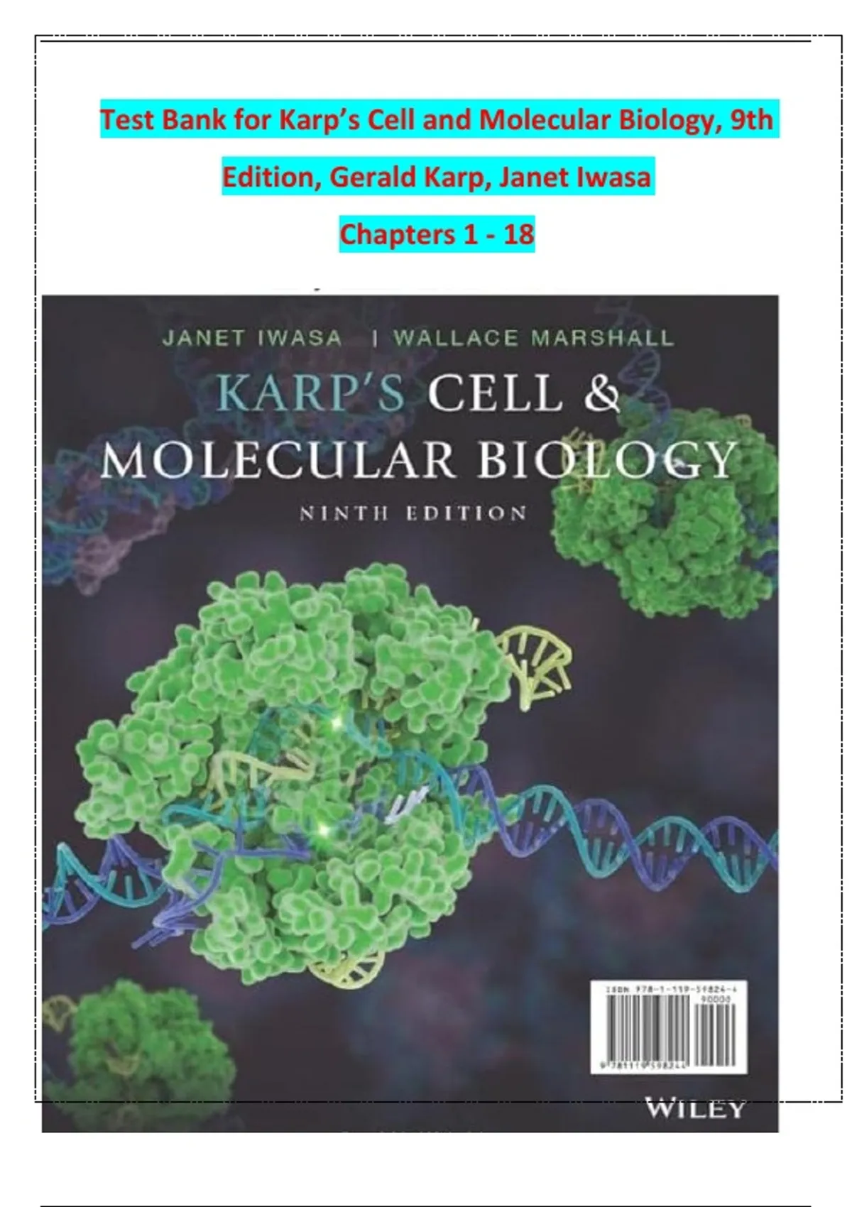 Test Bank for Karp's Cell and Molecular Biology 9th Edition by Gerald Karp, Janet Iwasa & Wallace Marshall – 2026 Latest Update | Exam Prep
