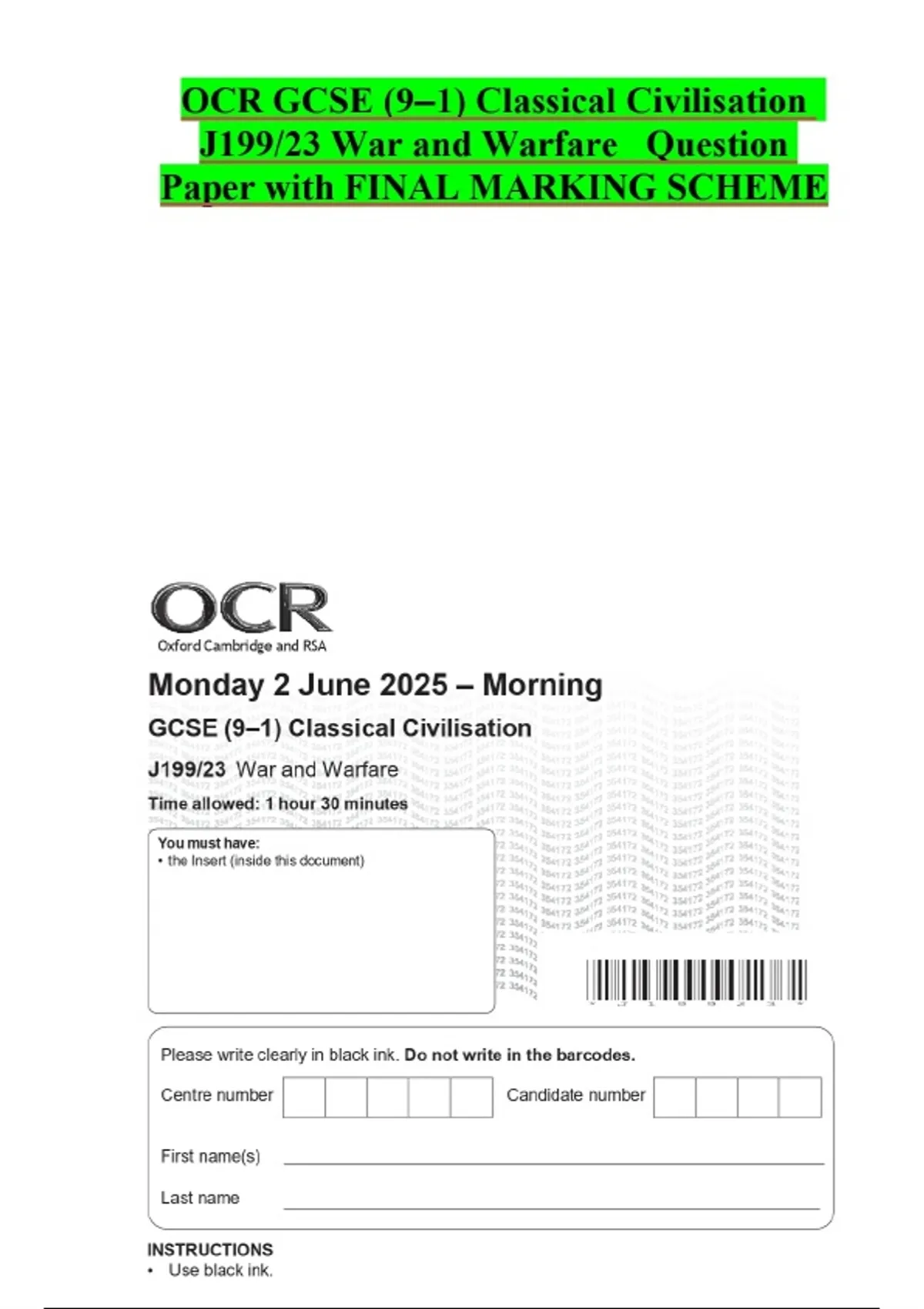 OCR GCSE (9–1) Classical Civilisation J199/23 War and Warfare Question Paper with FINAL MARKING SCHEME
