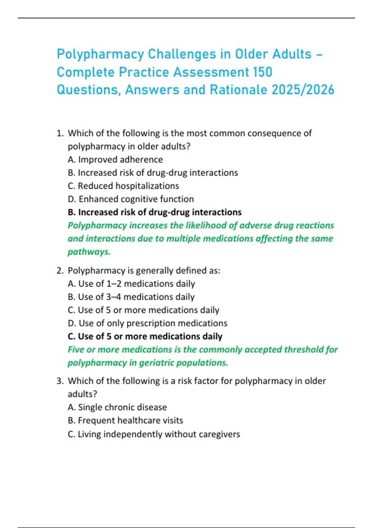 3. Which of the following is a risk factor for polypharmacy in older