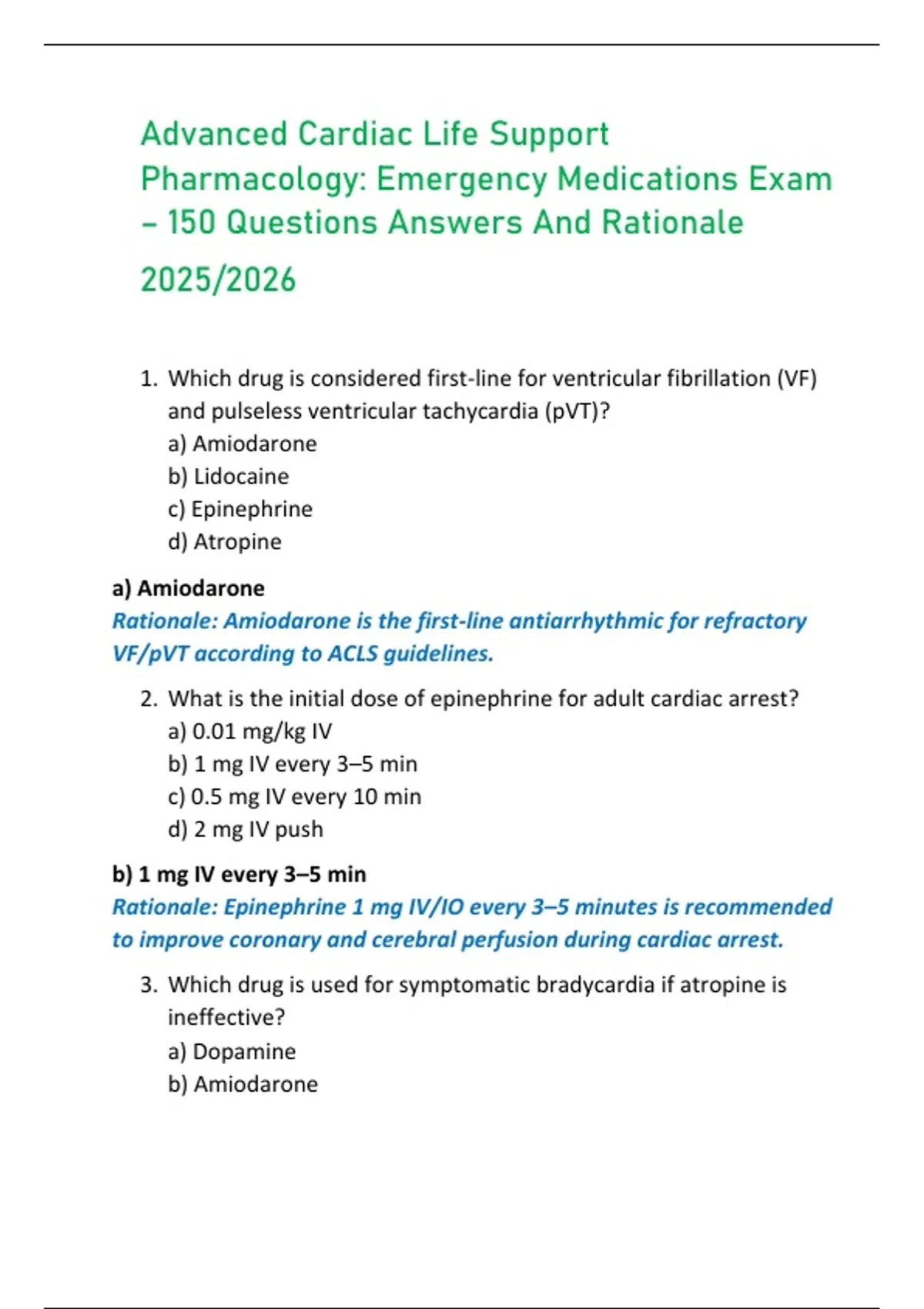 Rationale: Epinephrine 1 mg IV/IO is recommended immediately for
