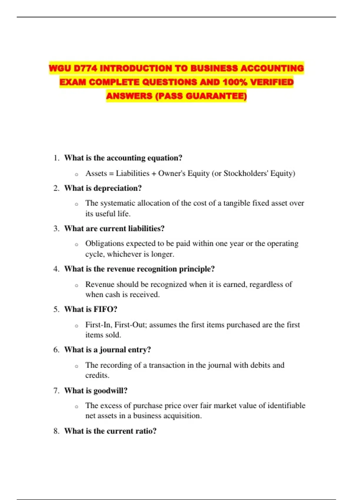 WGU D774 INTRODUCTION TO BUSINESS ACCOUNTING
