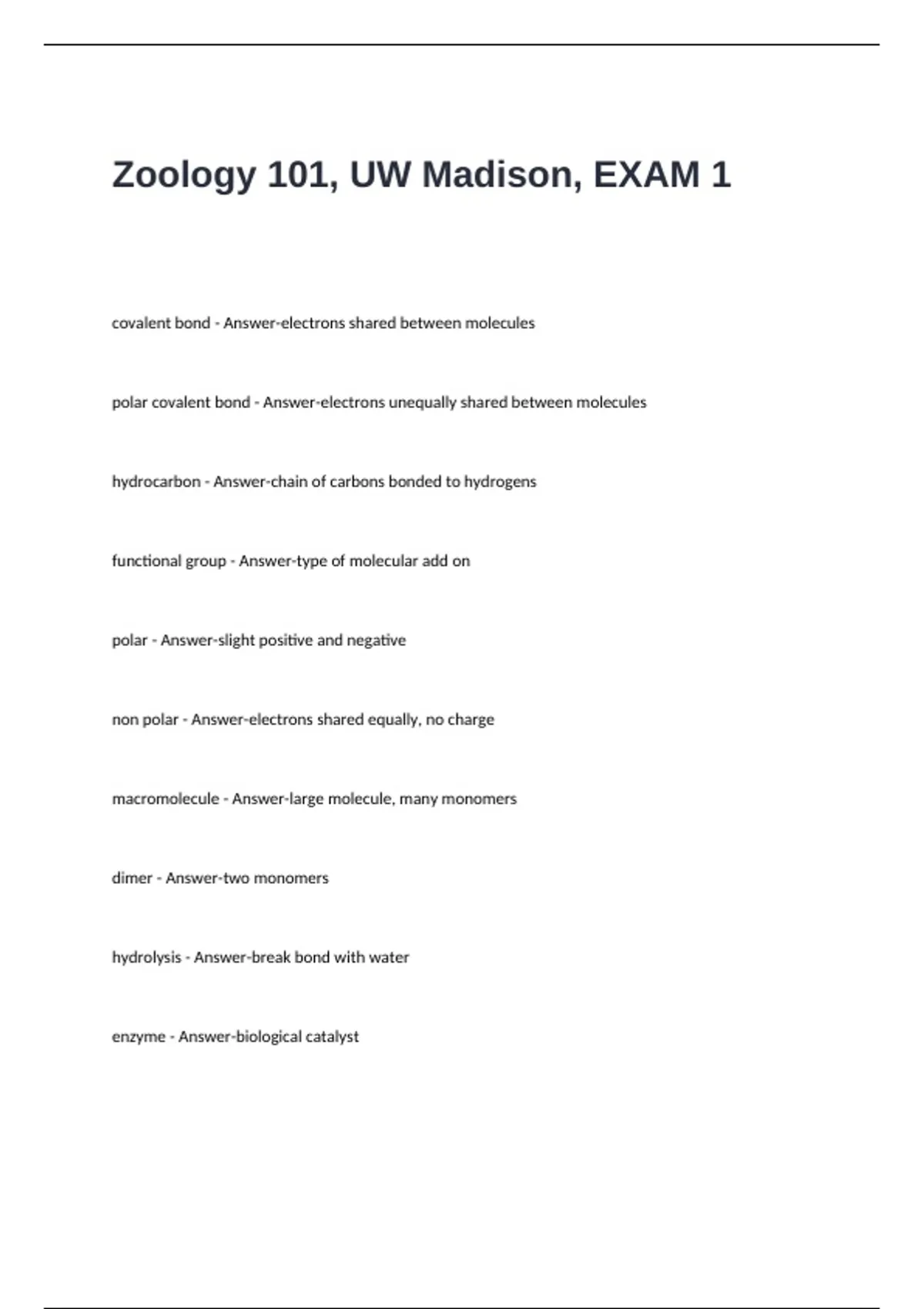 Zoology 101, UW Madison, EXAM 1 Questions with Correct Answers