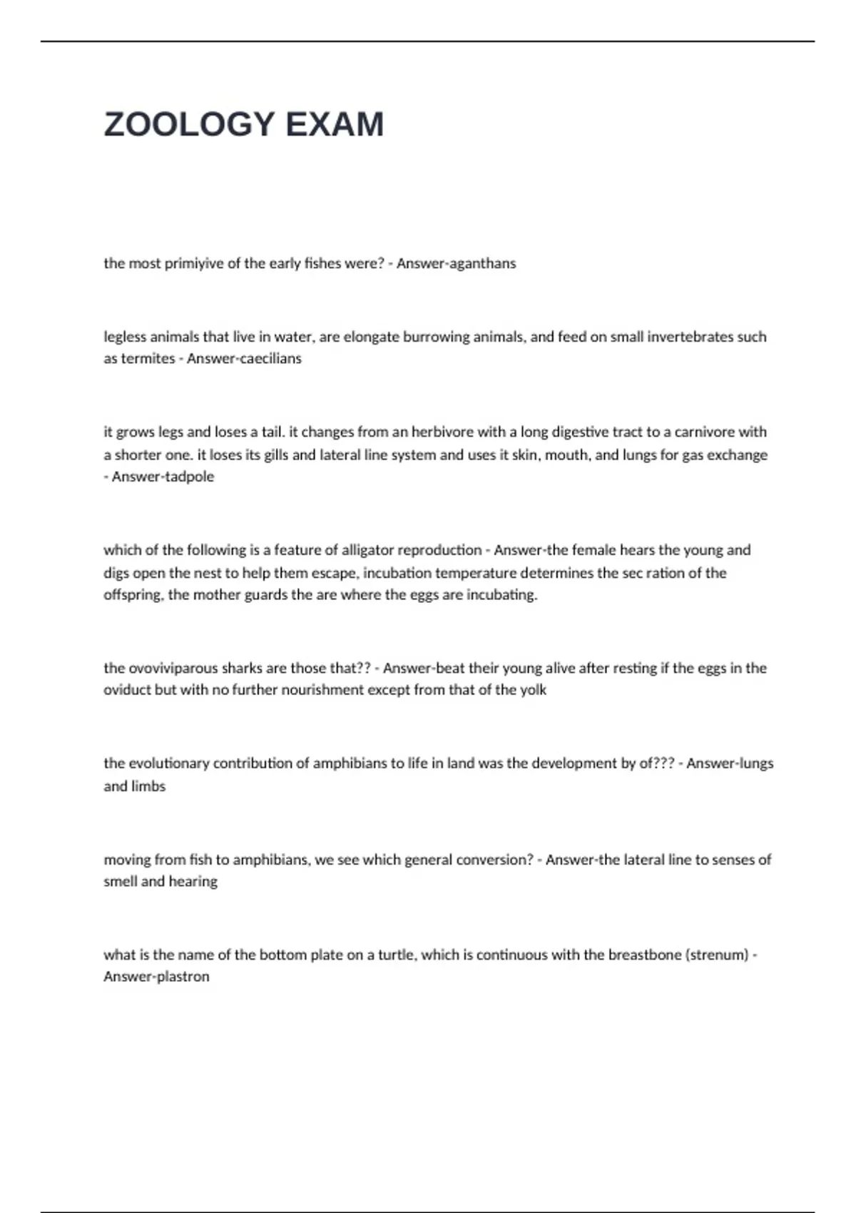 ZOOLOGY EXAM QUESTIONS AND ANSWERS