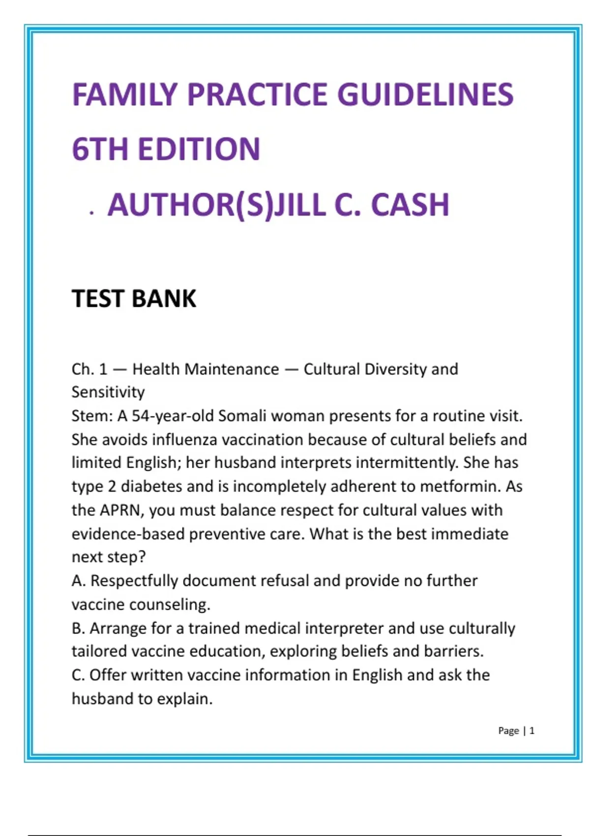 Ch. 1 — Health Maintenance — Cultural Diversity and