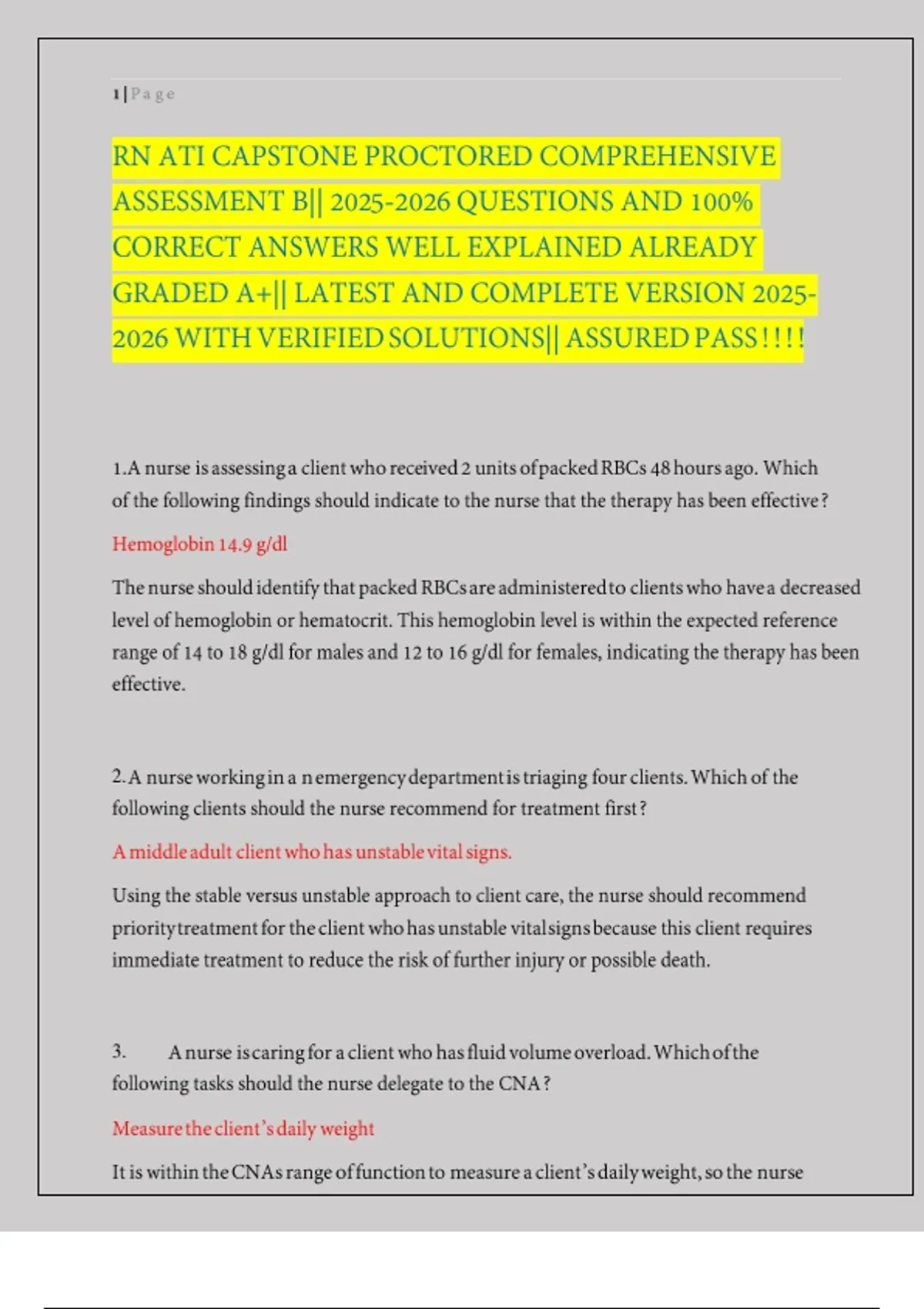 RN ATI CAPSTONE PROCTORED COMPREHENSIVE ASSESSMENT B|| QUESTIONS AND 100% CORRECT ANSWERS WELL EXPLAINED ALREADY GRADED A+|| LATEST AND COMPLETE VERSION WITH VERIFIED SOLUTIONS|| ASSURED PASS!!!!