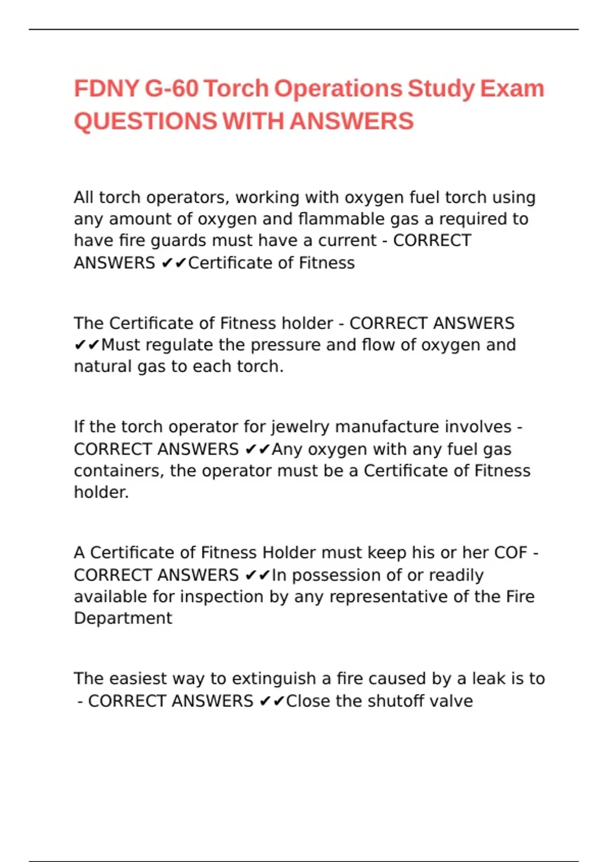 FDNY G-60 Torch Operations Study Exam QUESTIONS WITH ANSWERS