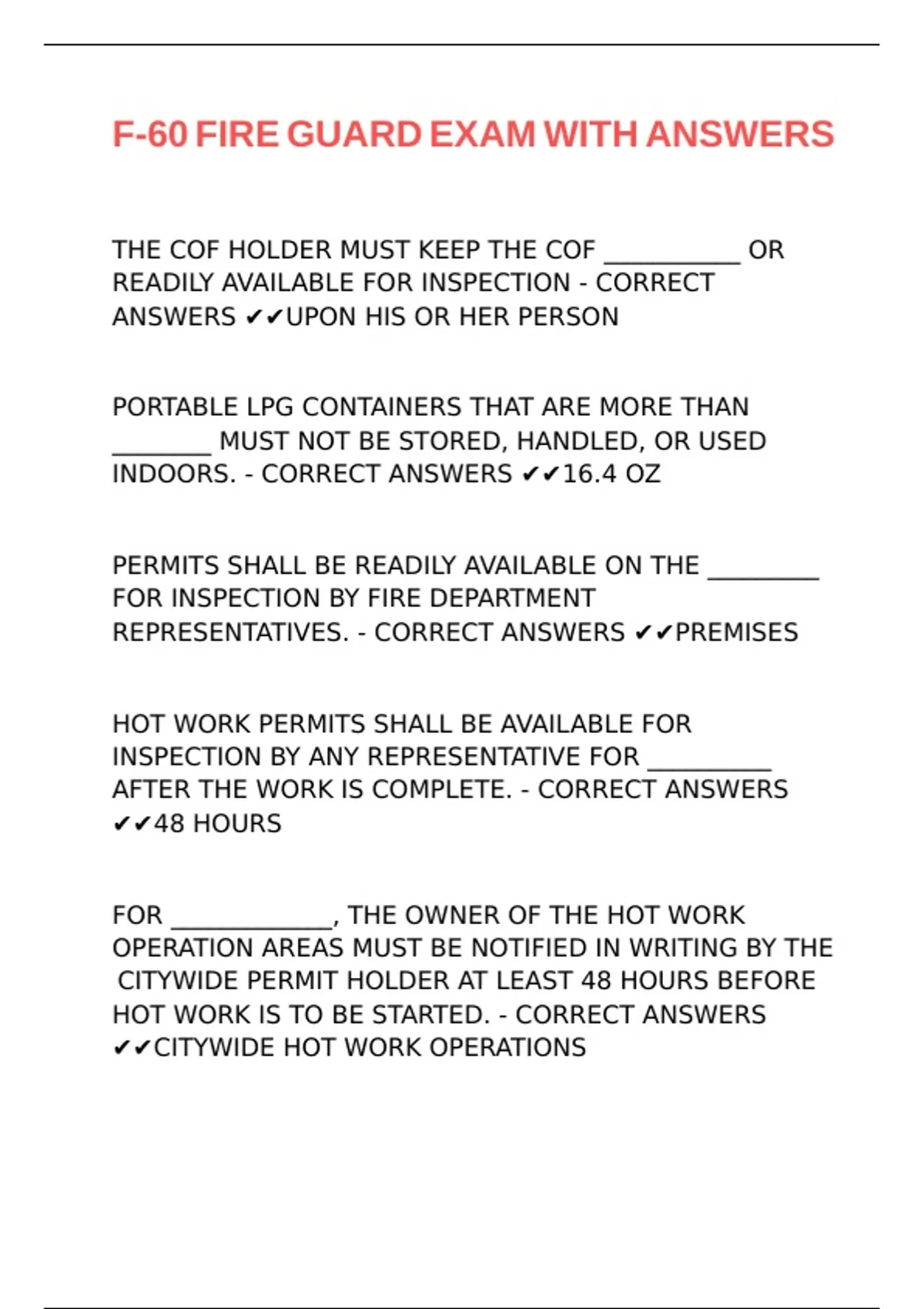 F-60 FIRE GUARD EXAM WITH ANSWERS