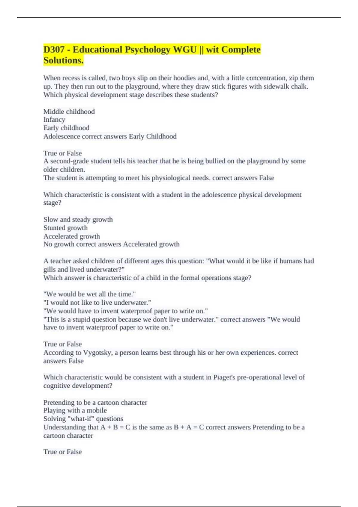 D307 - Educational Psychology WGU || wit Complete Solutions.