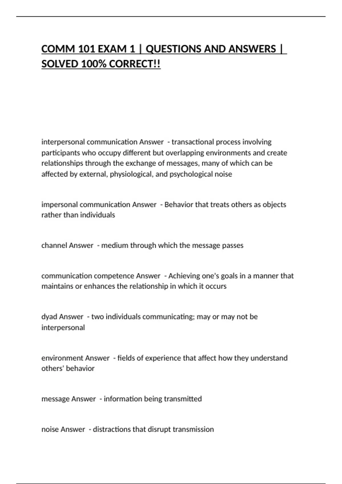 COMM 101 EXAM 1 | QUESTIONS AND ANSWERS |