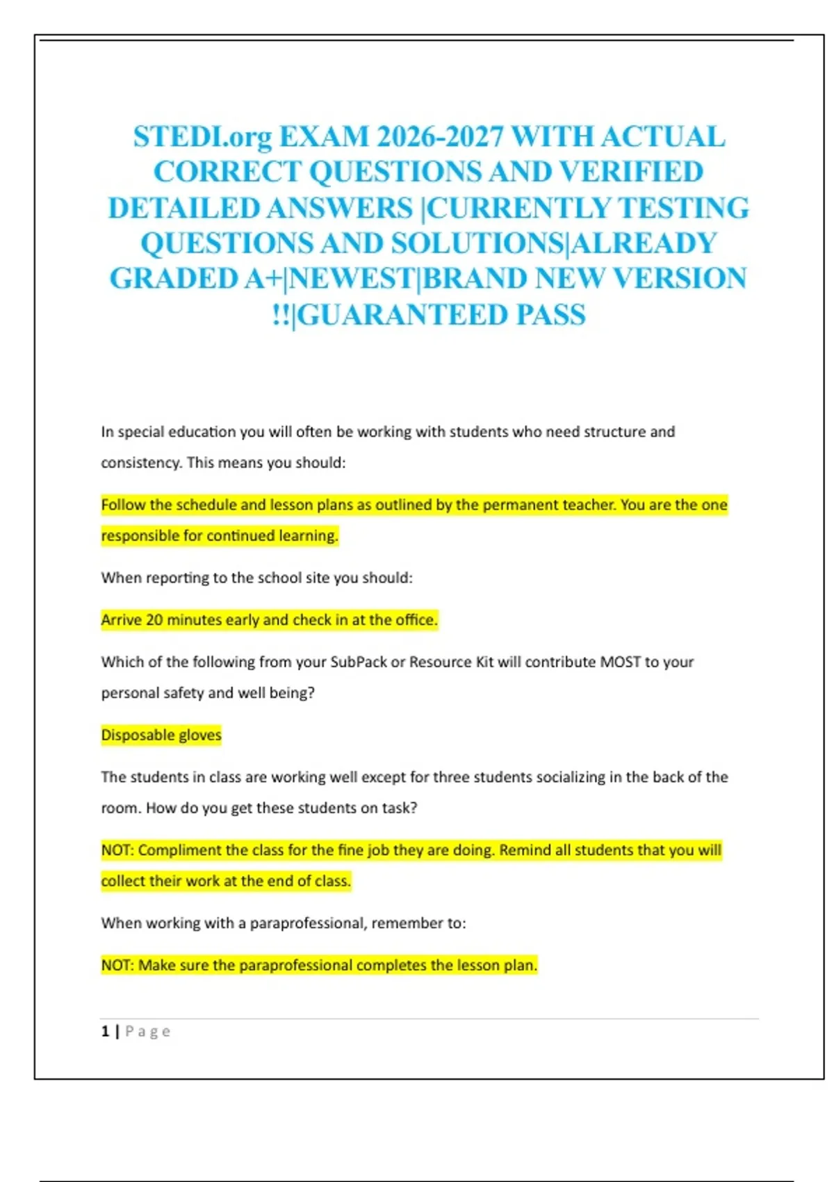 STEDI.org EXAM WITH ACTUAL CORRECT QUESTIONS AND VERIFIED DETAILED ANSWERS |CURRENTLY TESTING QUESTIONS AND SOLUTIONS|ALREADY GRADED A+|NEWEST|BRAND NEW VERSION !!|GUARANTEED PASS