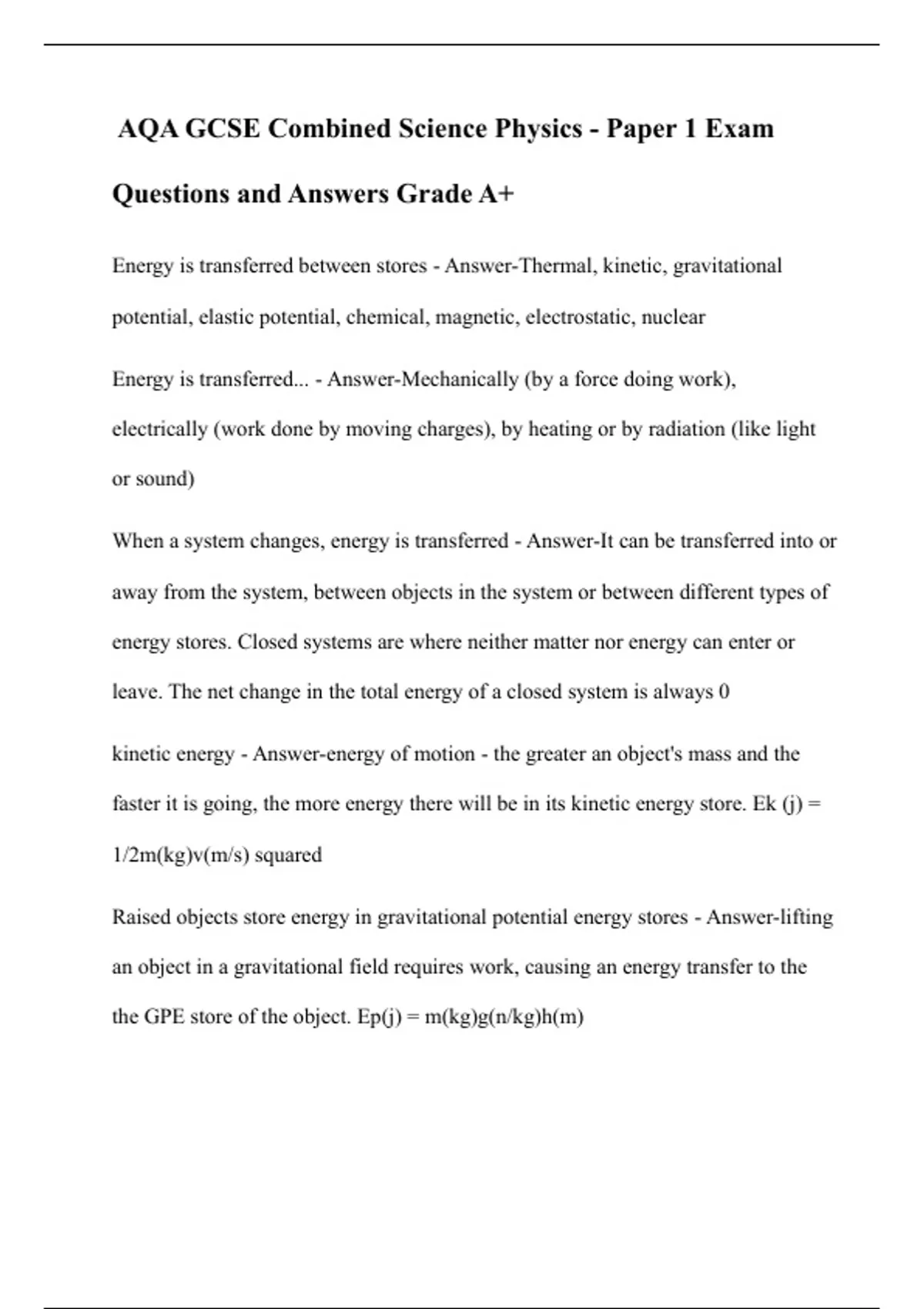 AQA GCSE Combined Science Physics - Paper 1 Exam Questions and Answers Grade A+