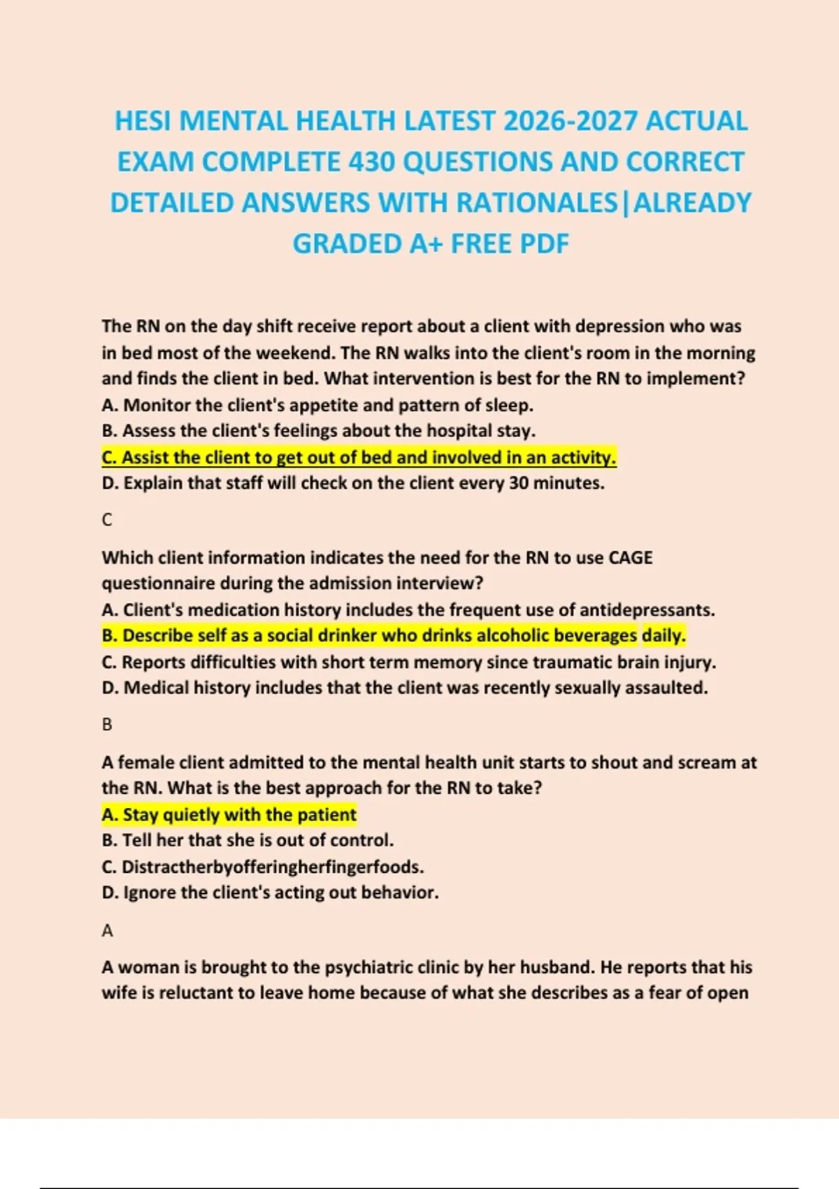 HESI MENTAL HEALTH LATEST 2026-2027 ACTUAL