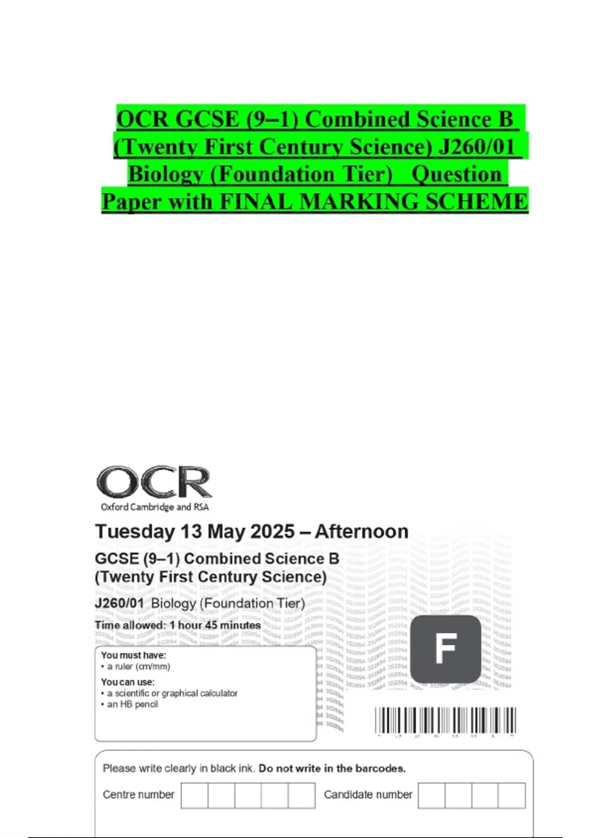OCR GCSE (9–1) Combined Science B (Twenty First Century Science) J260/01 Biology (Foundation Tier) Question Paper with FINAL MARKING SCHEME