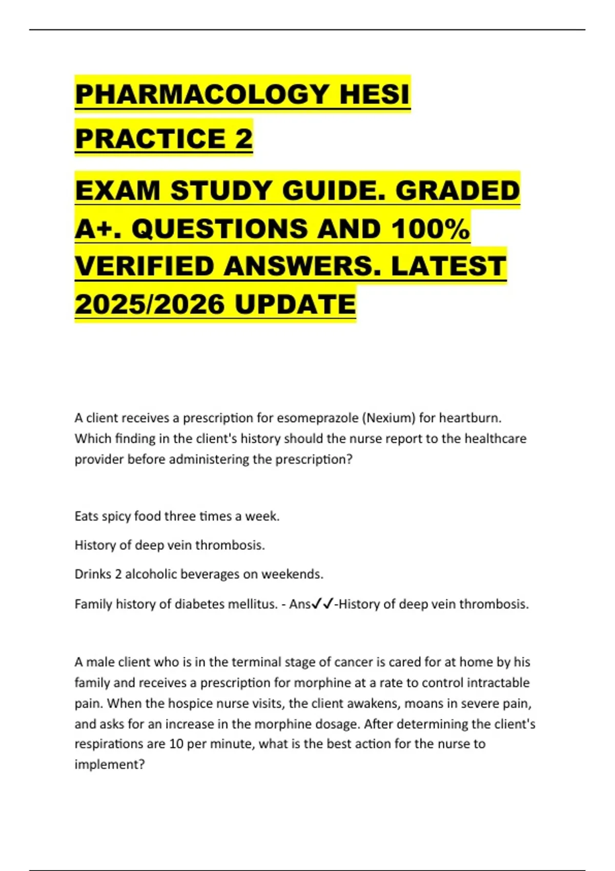 PHARMACOLOGY HESI PRACTICE 2 EXAM STUDY GUIDE. GRADED A+. QUESTIONS AND 100% VERIFIED ANSWERS. LATEST 2025/2026 UPDATE
