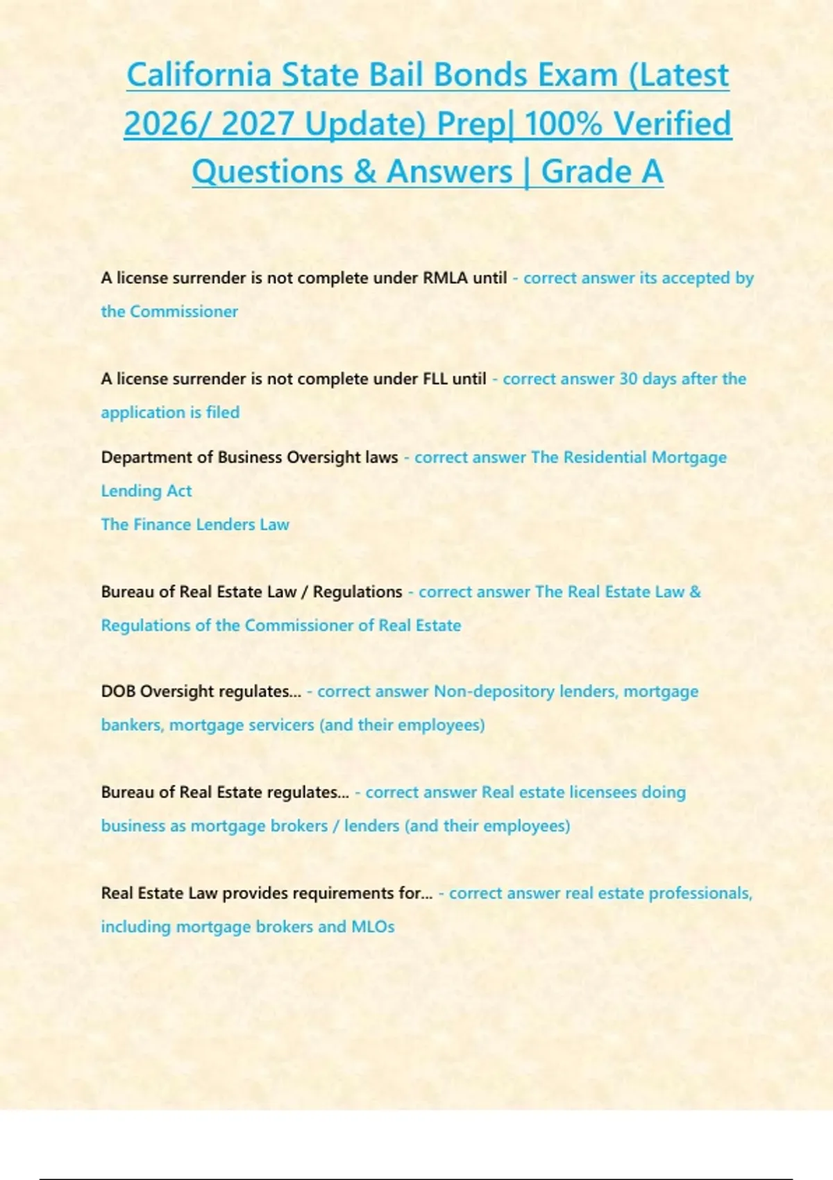 California State Bail Bonds Exam (Latest 2026/ 2027 Update) Prep| 100% Verified Questions & Answers | Grade A