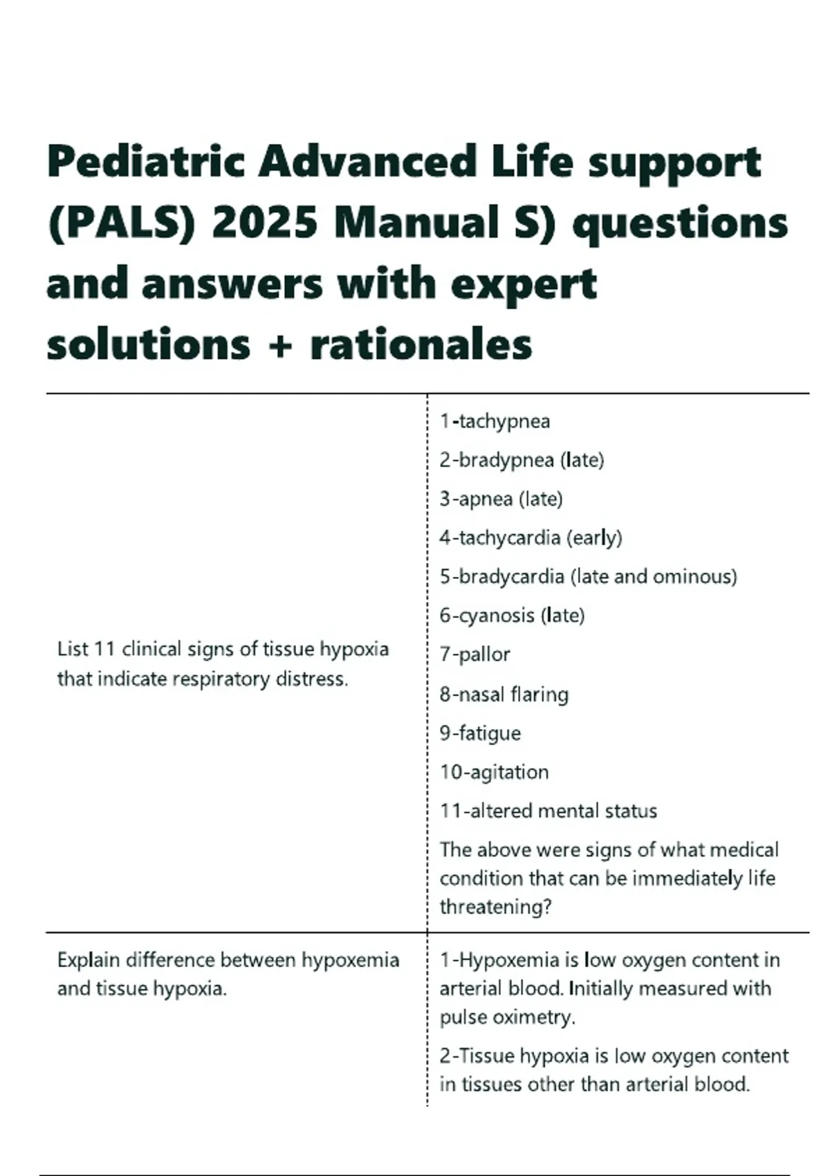 Pediatric Advanced Life support (PALS) 2025 Manual S) questions and answers with expert solutions