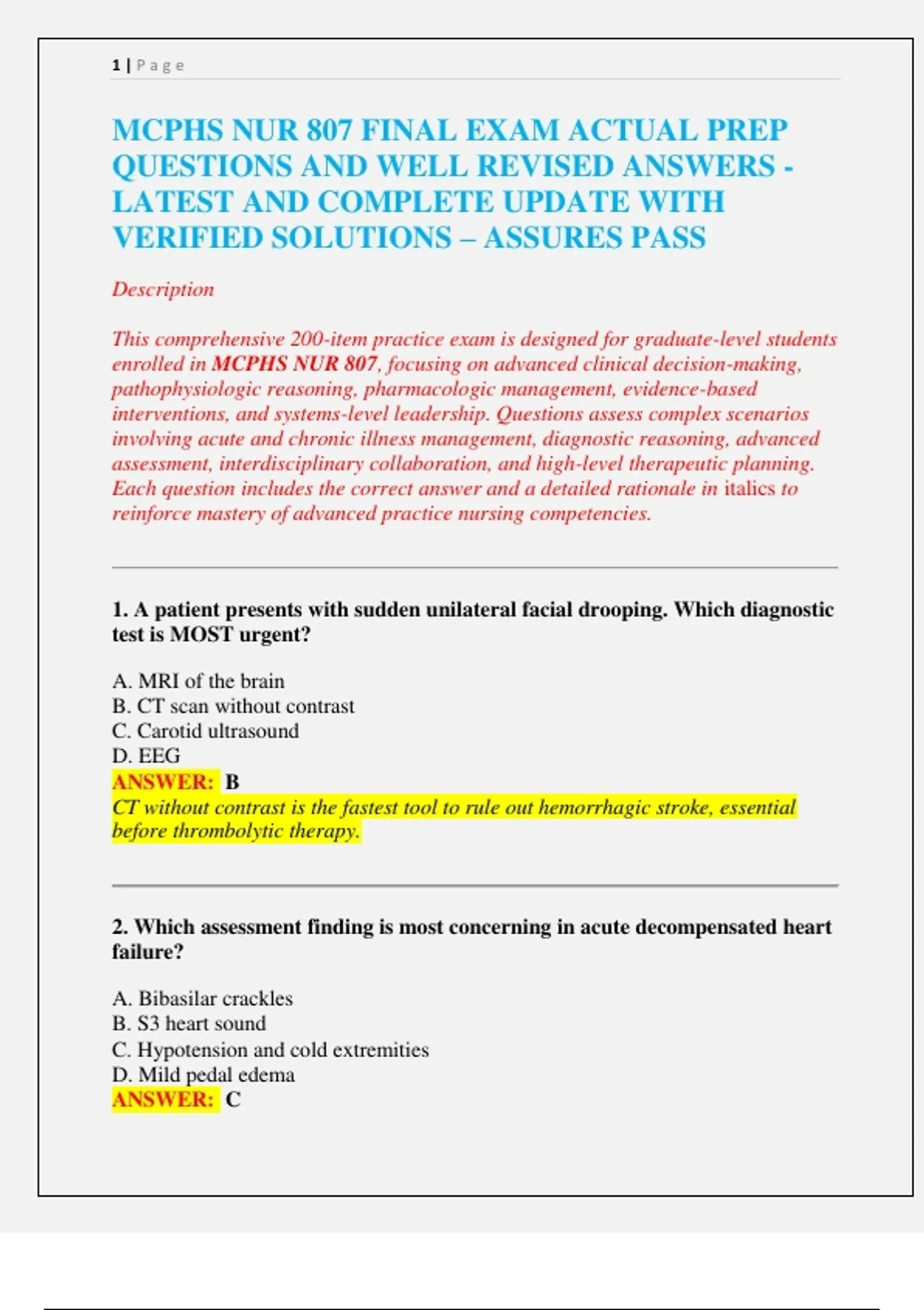 MCPHS NUR 807 FINAL EXAM ACTUAL PREP