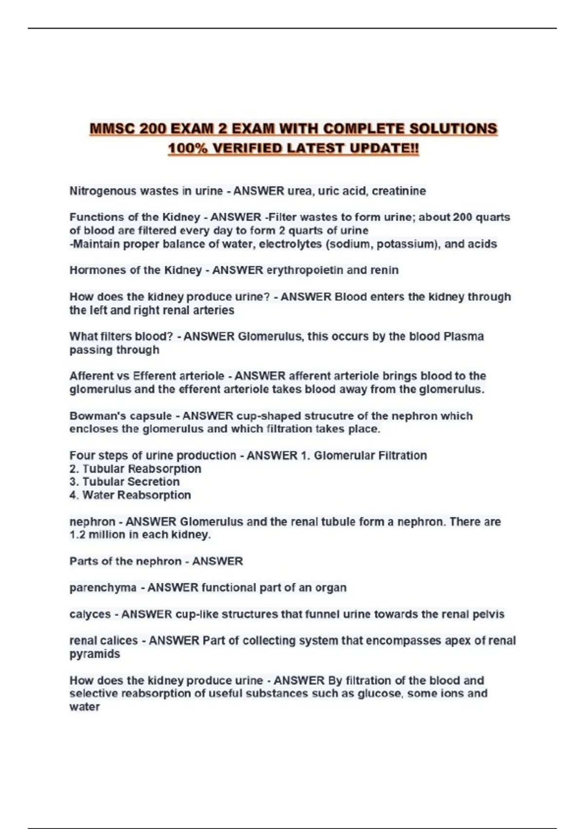 mmsc 200 exam 2 exam with complete solutions