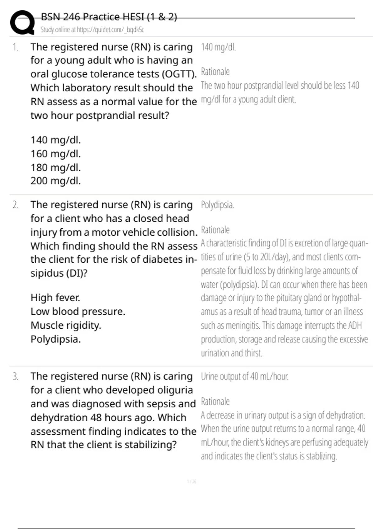 BSN 246 Practice HESI