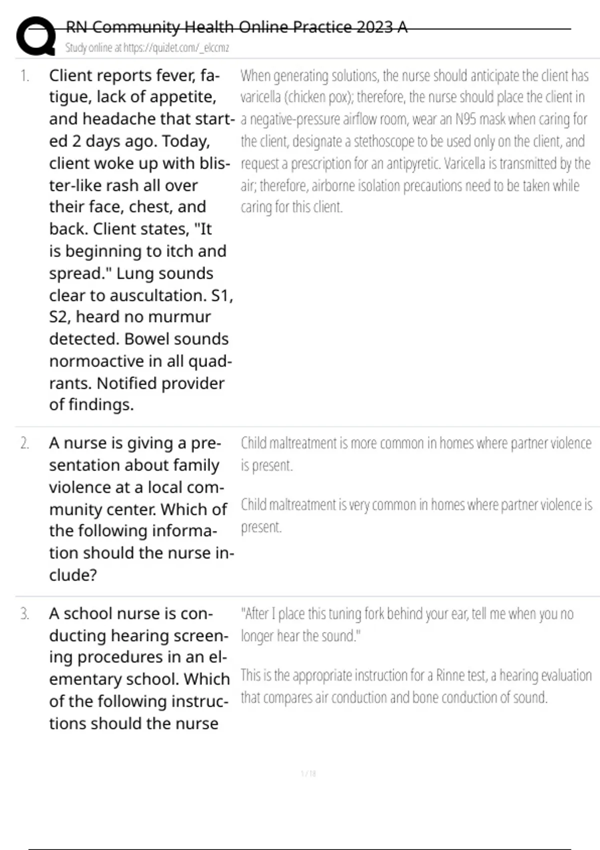 RN Community Health Online Practice
