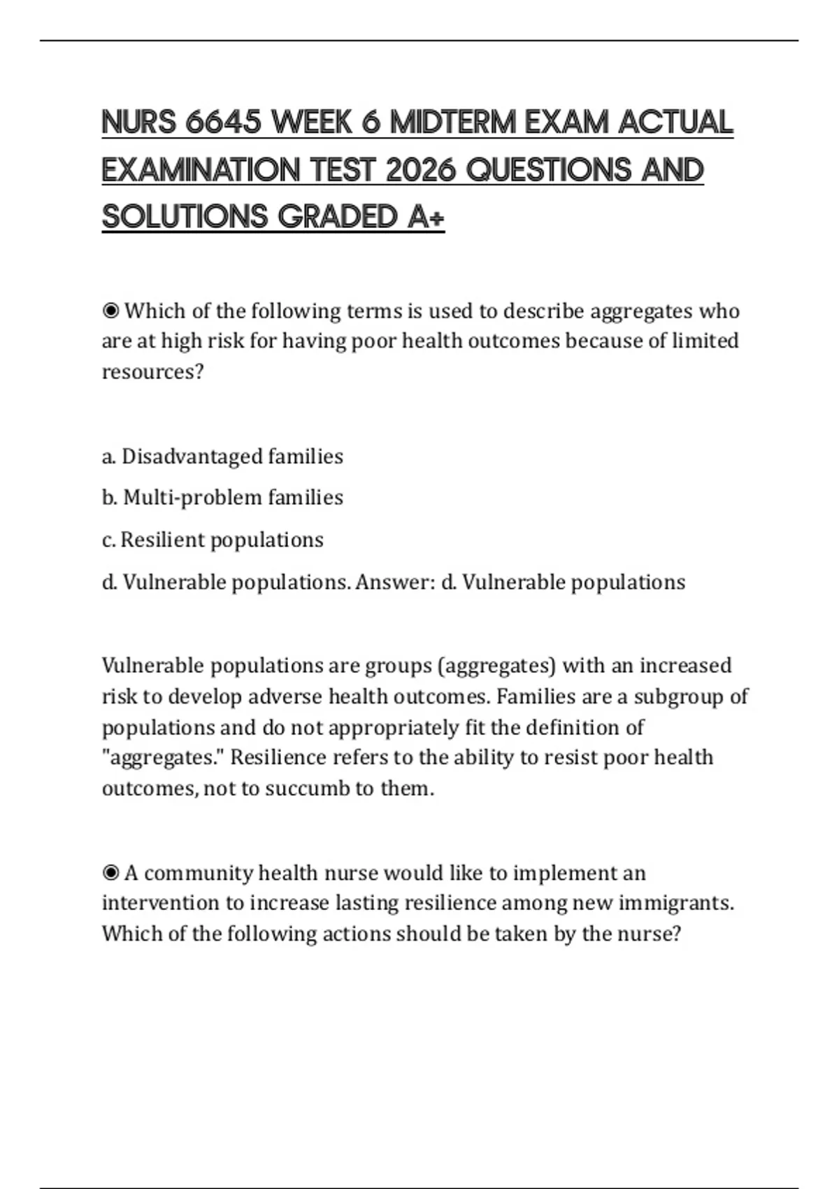NURS 6645 WEEK 6 MIDTERM EXAM ACTUAL EXAMINATION TEST 2026 QUESTIONS AND SOLUTIONS GRADED A+
