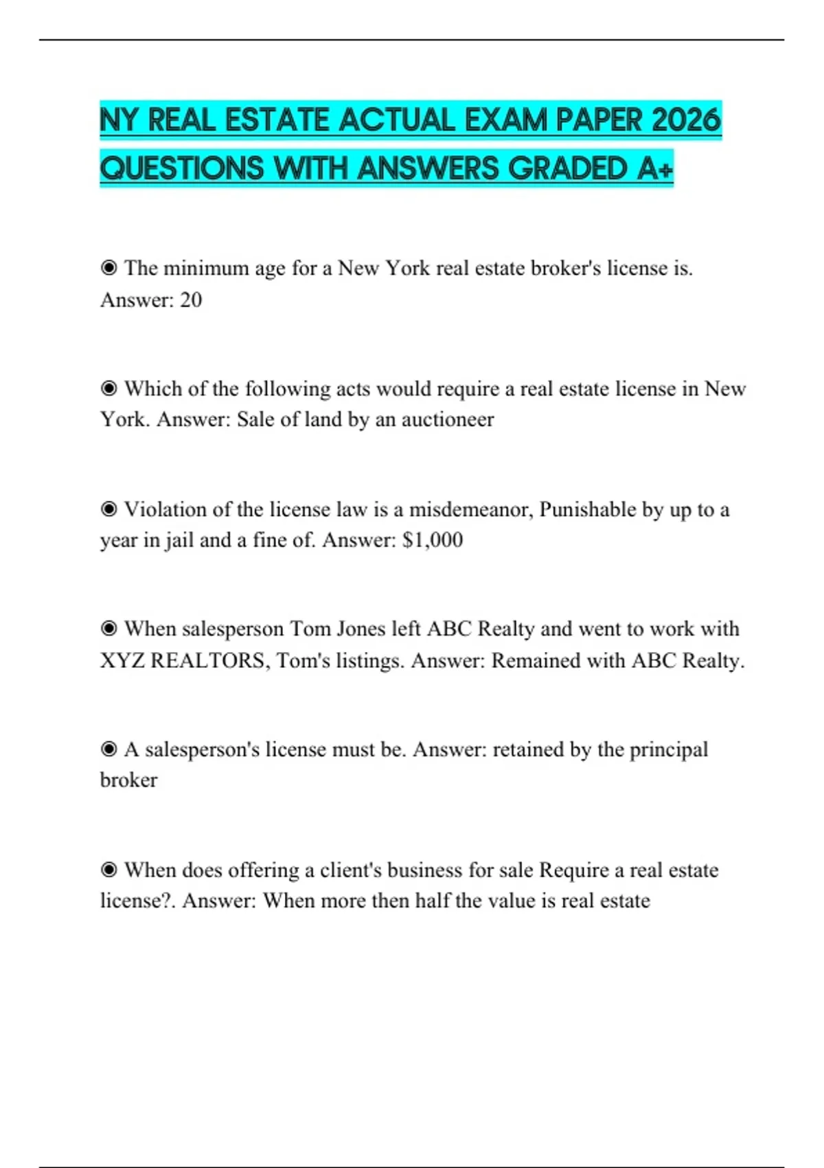 ◉ The minimum age for a New York real estate broker's license is.
