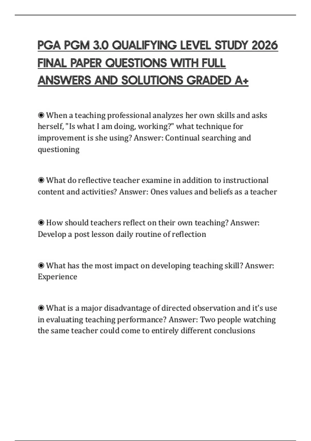 ◉ How should teachers reflect on their own teaching? Answer: