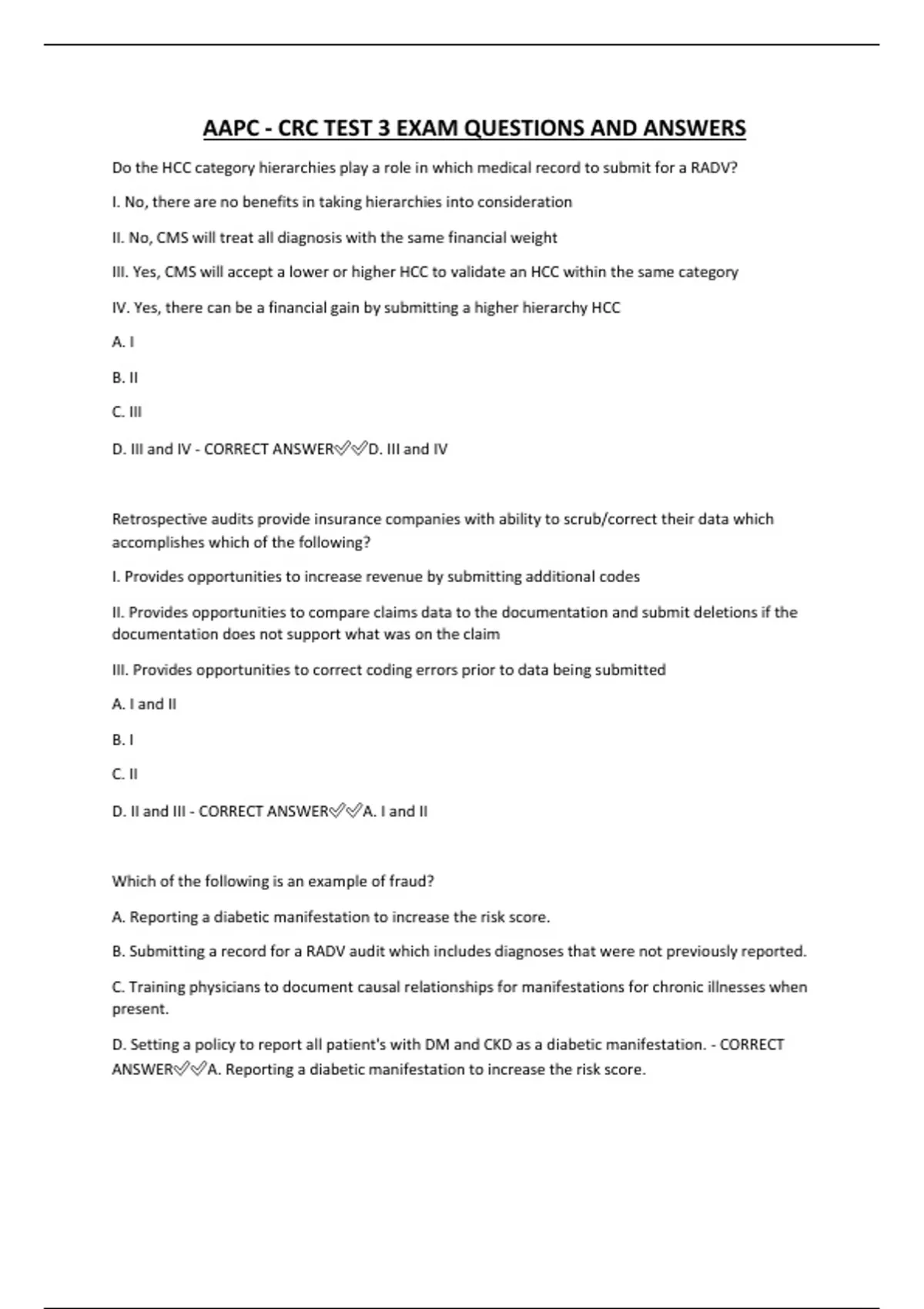 ANSWER✅✅A. Reporting a diabetic manifestation to increase the risk score.