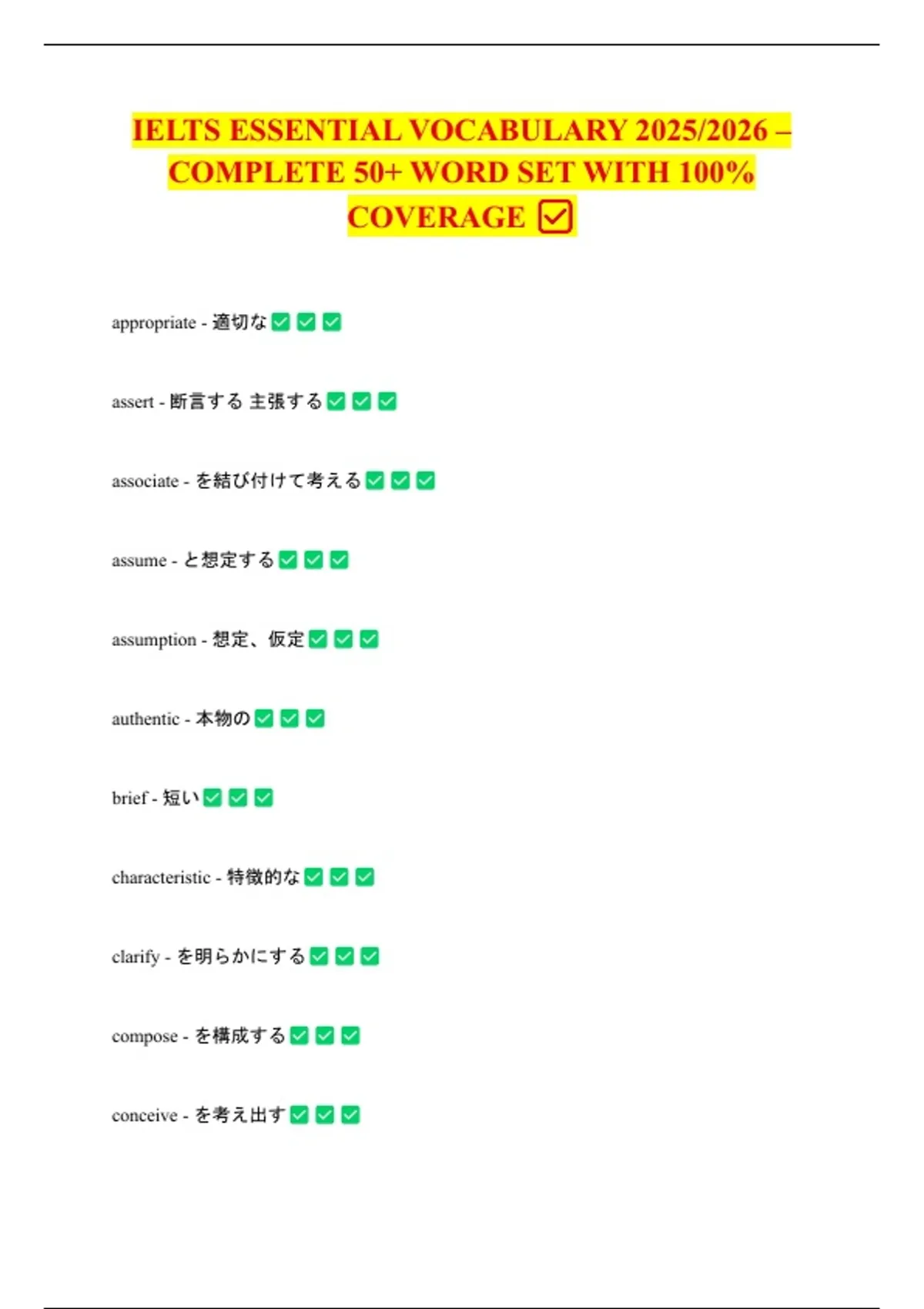 This resource provides a comprehensive set of 50 crucial IELTS vocabulary terms for 2025/2026. Each word includes definitions, practical examples, and usage tips, designed to enhance your writing, reading, speaking, and listening skills. Learners can apply these words confidently in academic contexts, improving clarity, precision, and overall performance.