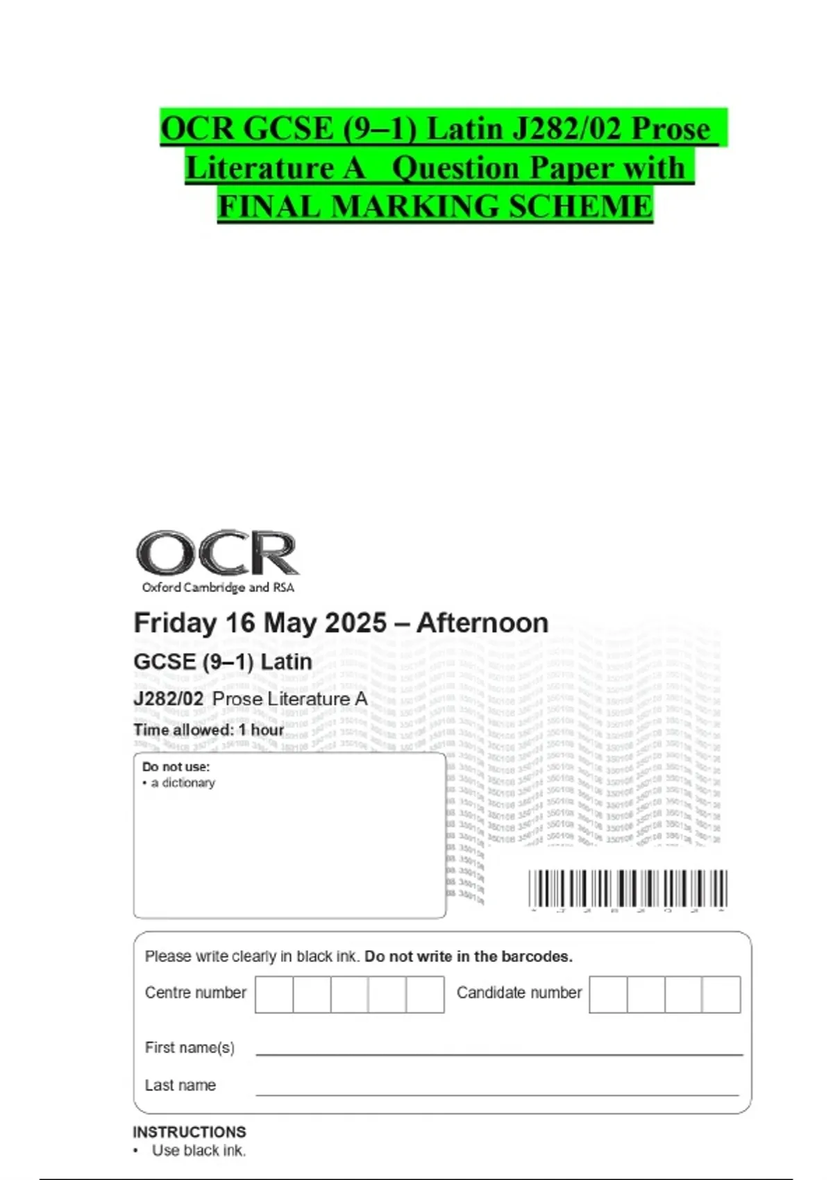 OCR GCSE (9–1) Latin J282/02 Prose Literature A Question Paper with FINAL MARKING SCHEME