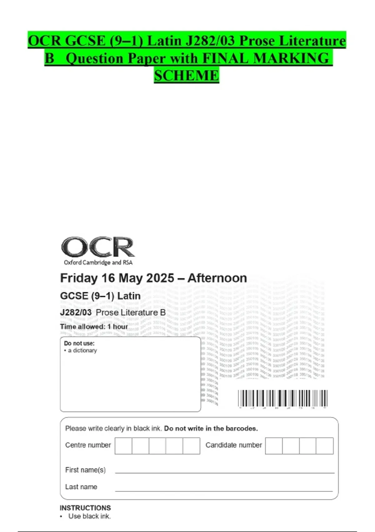 OCR GCSE (9–1) Latin J282/03 Prose Literature B Question Paper with FINAL MARKING SCHEME