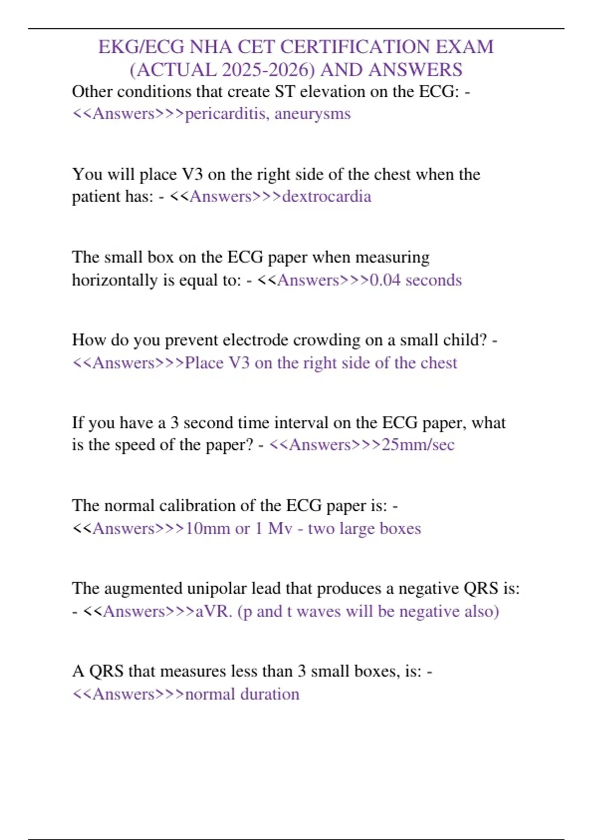 , EKG/ECG NHA CET CERTIFICATION EXAM