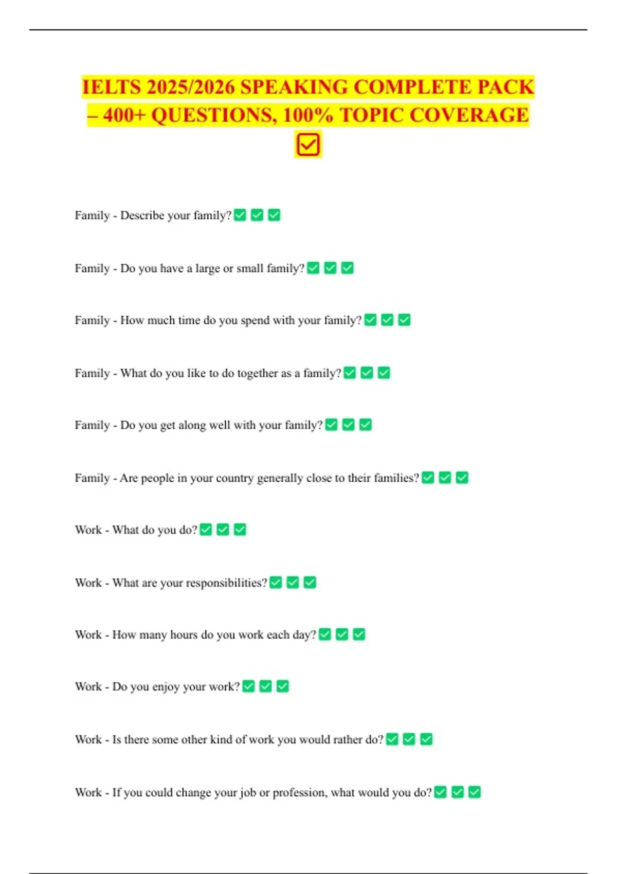 IELTS 2025/2026 SPEAKING COMPLETE PACK – 400+ QUESTIONS, 100% TOPIC COVERAGE