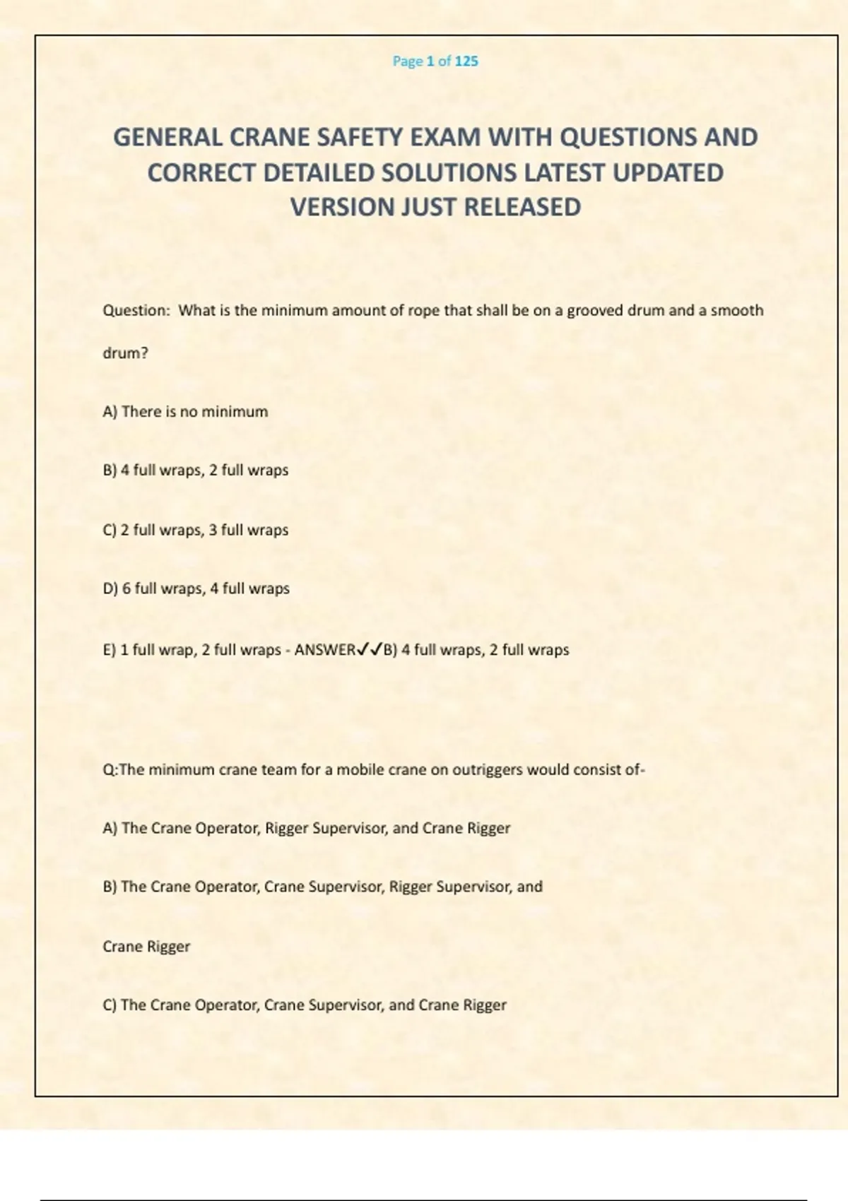 GENERAL CRANE SAFETY EXAM WITH QUESTIONS AND CORRECT DETAILED SOLUTIONS LATEST UPDATED VERSION JUST RELEASED