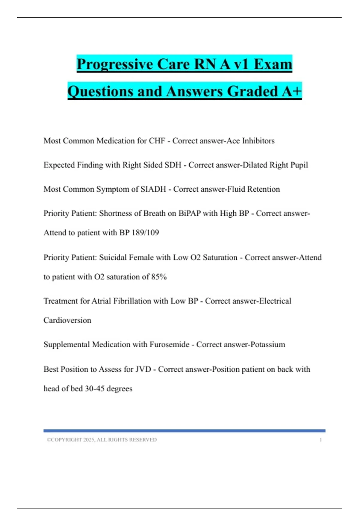 Progressive Care RN A v1 Exam