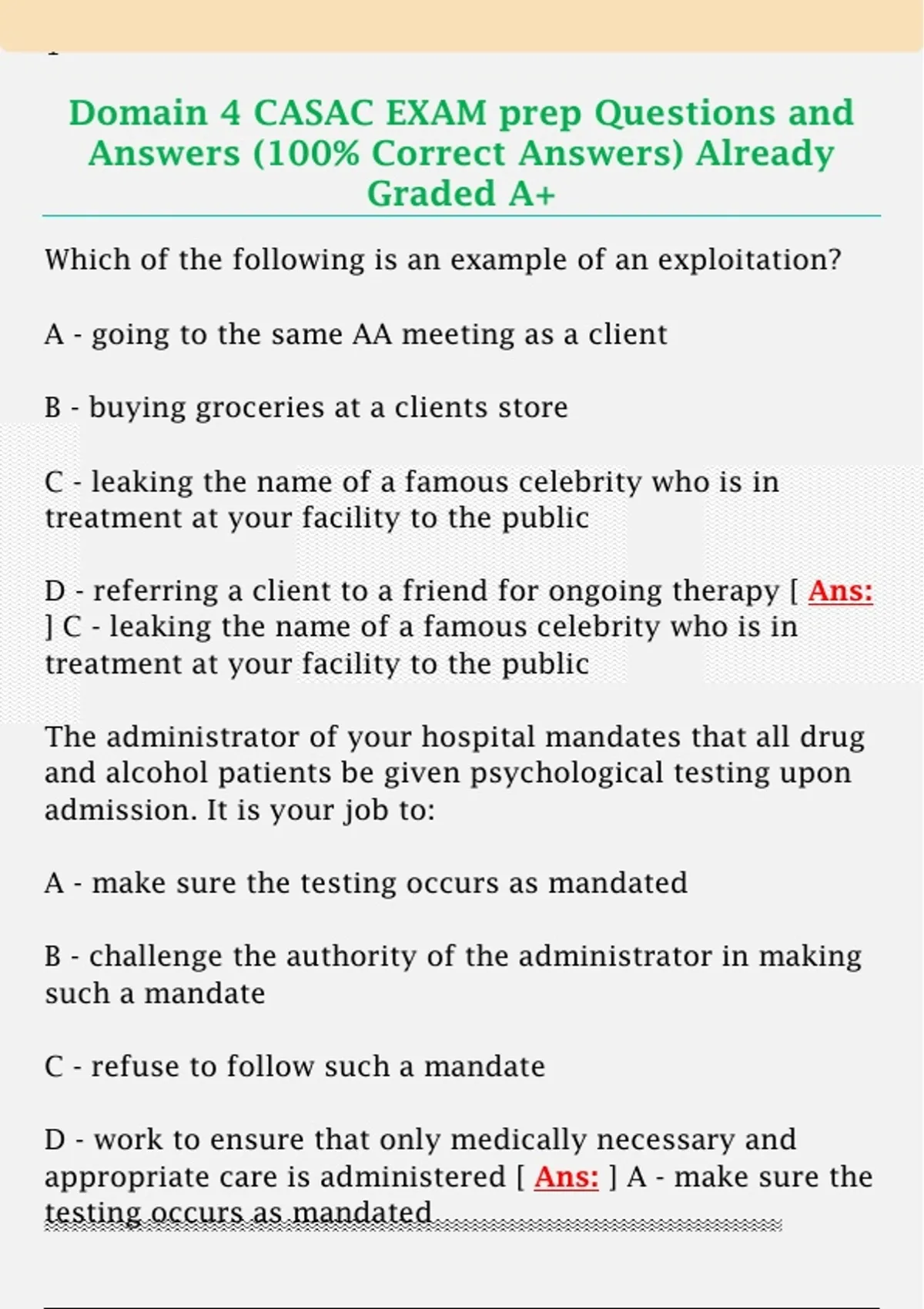 Domain 4 CASAC EXAM prep Questions and Answers (100% Correct Answers) Already Graded A+