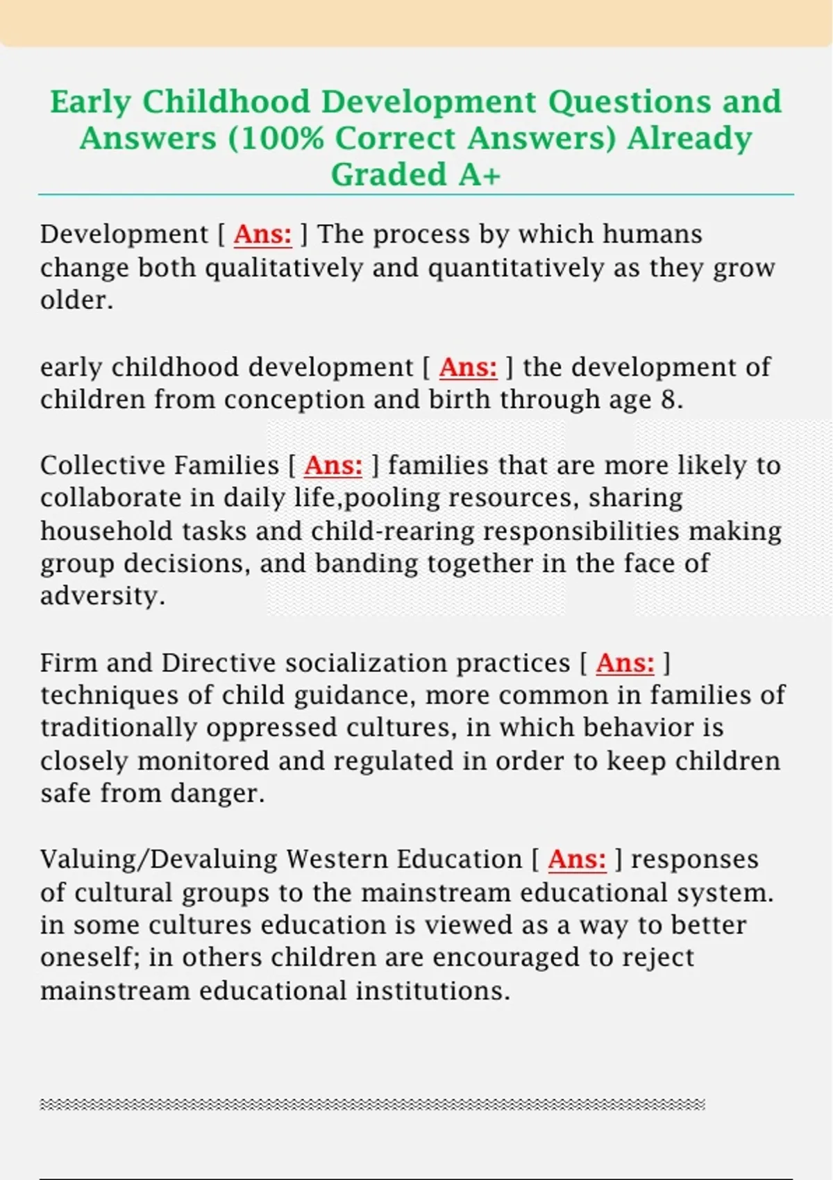 Early Childhood Development Questions and