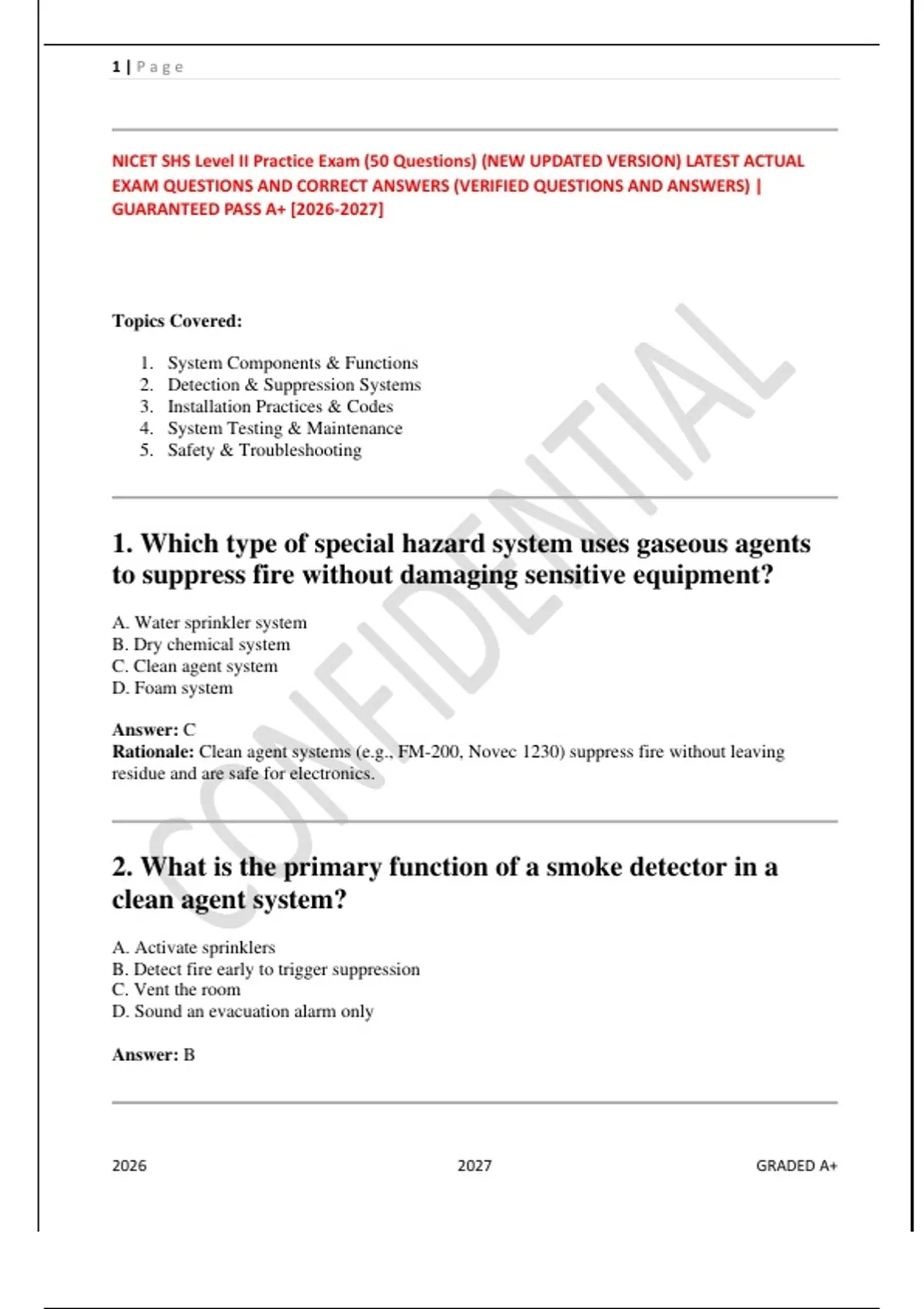 NICET SHS Level II Practice Exam (50 Questions) (NEW UPDATED VERSION) LATEST ACTUAL