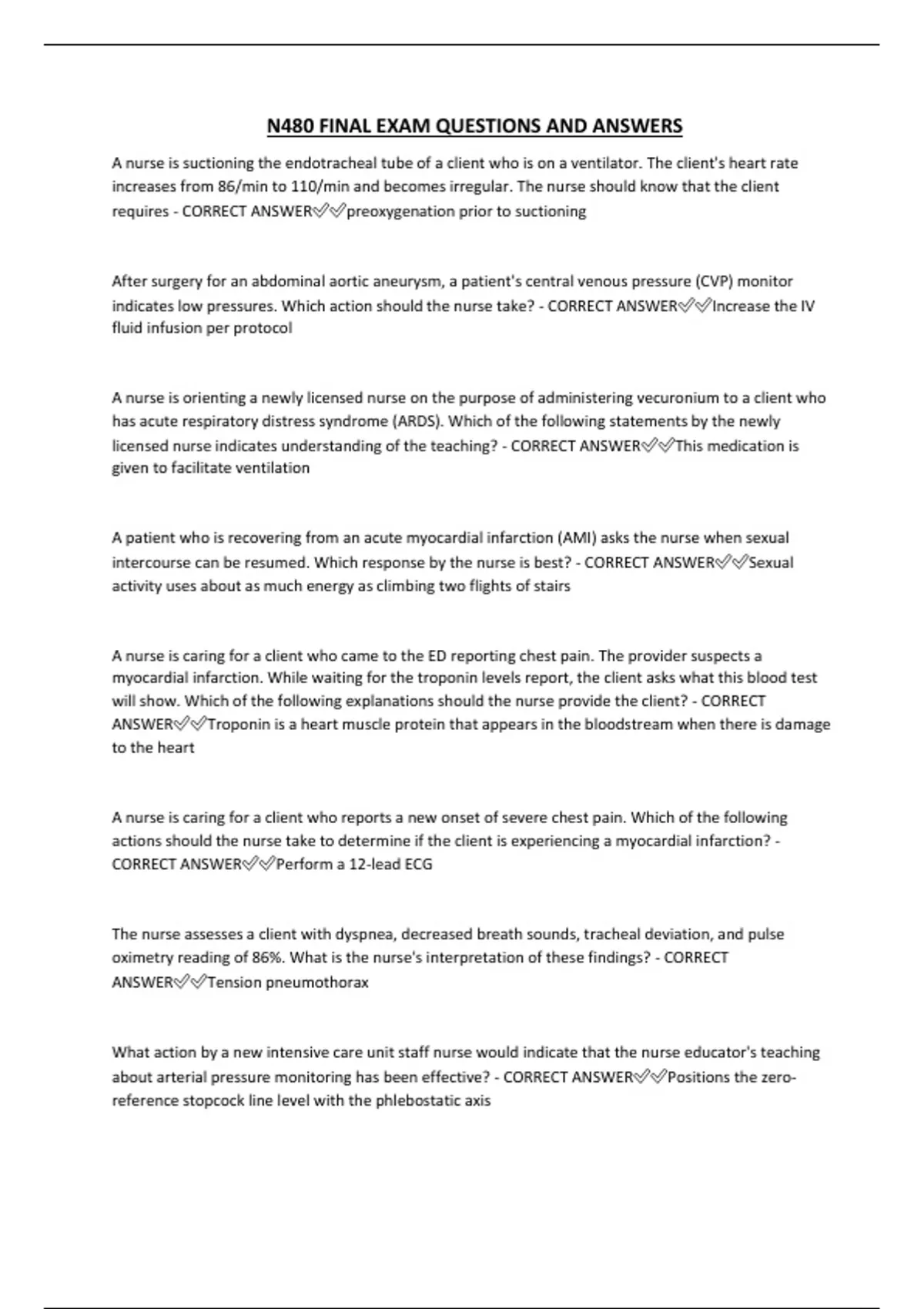 N480 FINAL EXAM QUESTIONS AND ANSWERS
