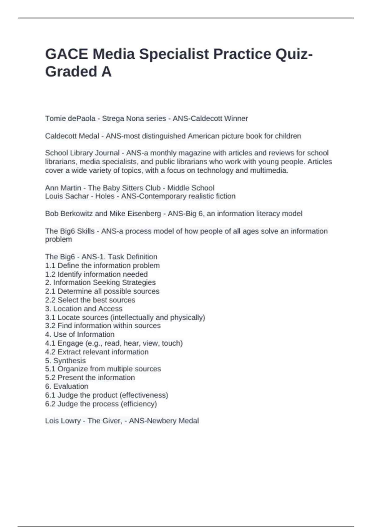 GACE Media Specialist Practice Quiz-Graded A